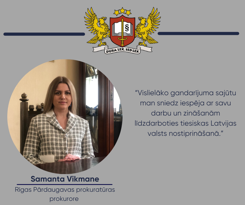 Arī vēlāk izvēli turpināt karjeru prokuratūrā lielā mērā ietekmējuši iedvesmojoši nozares profesionāļi. “Gan bakalaura, gan maģistra studiju laikā Latvijas Universitātes Juridiskajā fakultātē visgaidītākās lekcijas un semināri bija tie, kurus vadīja pieredzējušie un profesionālie mācībspēki no Krimināltiesisko zinātņu katedras,” norāda prokurore. Studiju laikā Samanta Vikmane vairāk nekā divus gadus strādāja par prokurora palīgu. “Ik dienu, vērojot savu zinošo kolēģu – prokuroru – darbu un iepazīstot šīs profesijas izaicinājumus, nostiprinājās mana pārliecība, ka vēlos savu dzīvi saistīt ar prokurora amatu, kā arī to, ka šis darbs ir man piemērots,” stāsta S. Vikmane.