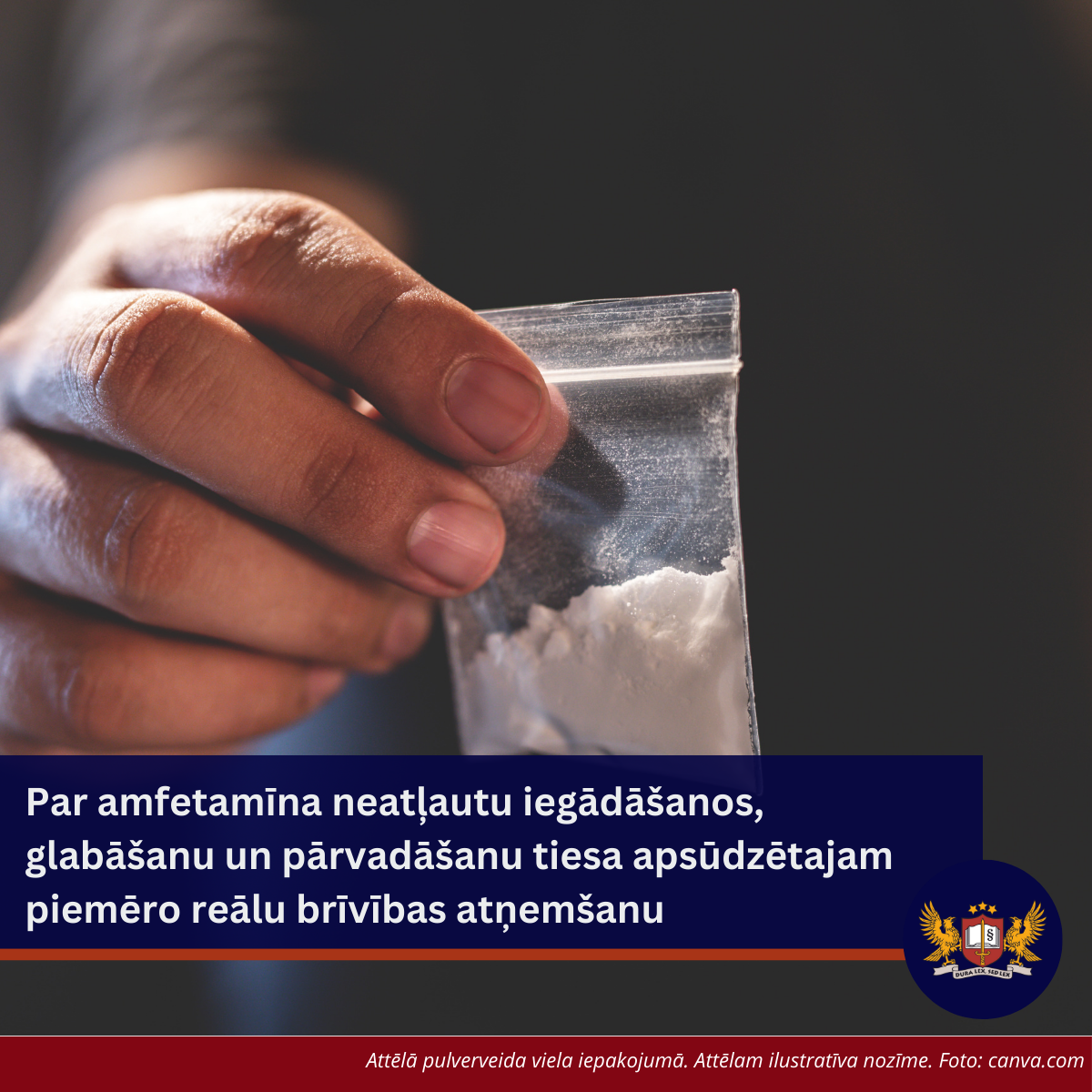 Par amfetamīna neatļautu iegādāšanos, glabāšanu un pārvadāšanu tiesa apsūdzētajam piemēro reālu brīvības atņemšanu