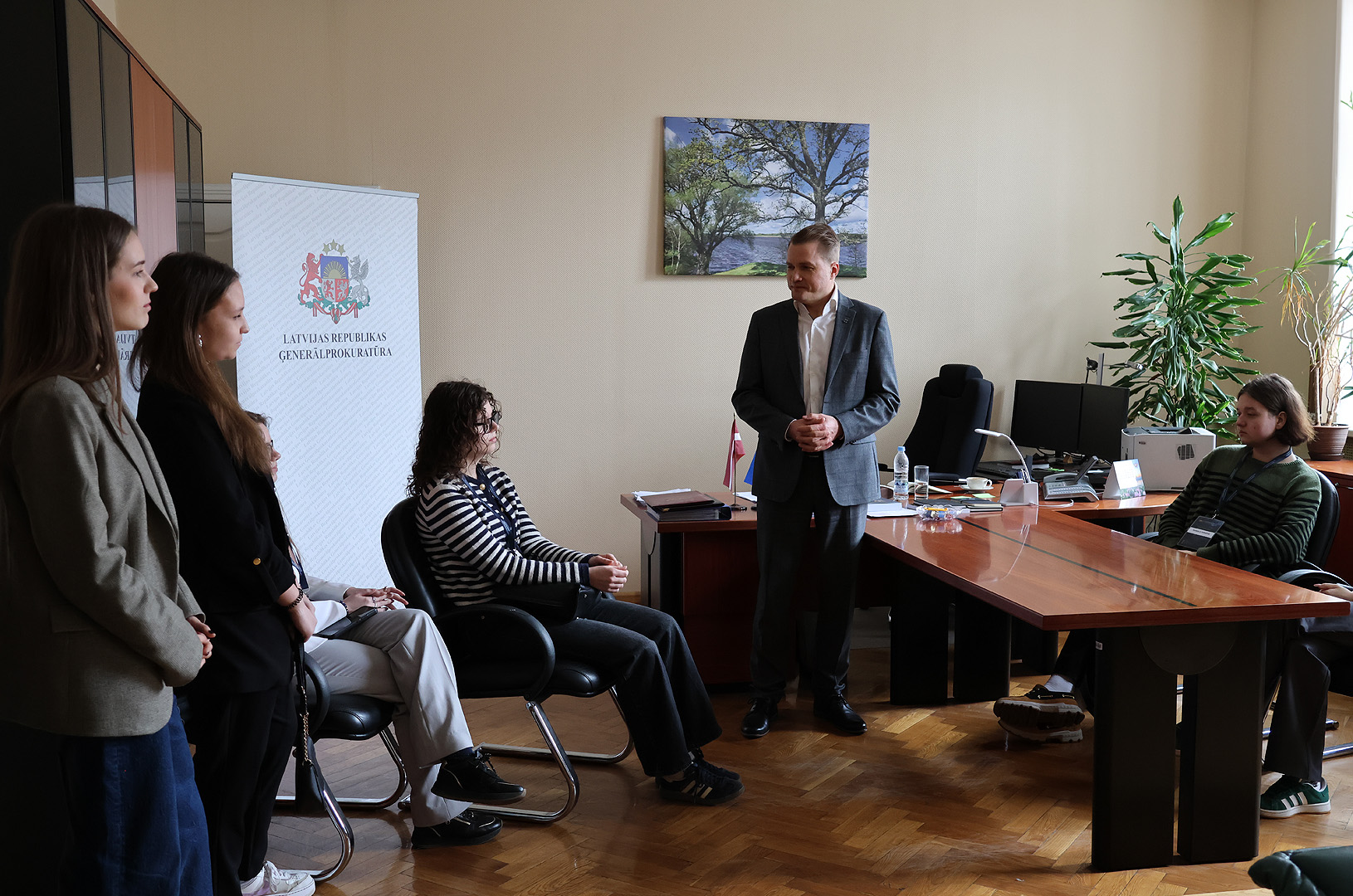 Dienas gaitā jaunieši tikās ar Ģenerālprokuratūras Darbības kontroles un starptautiskās sadarbības departamenta virsprokuroru Aivaru Ostapko, Īpaši pilnvaroto prokuroru nodaļas prokuroru Mārtiņu Jansonu un Starptautiskās sadarbības nodaļas prokuroriem Mārci Viļumu un Ievu Paeglīti.