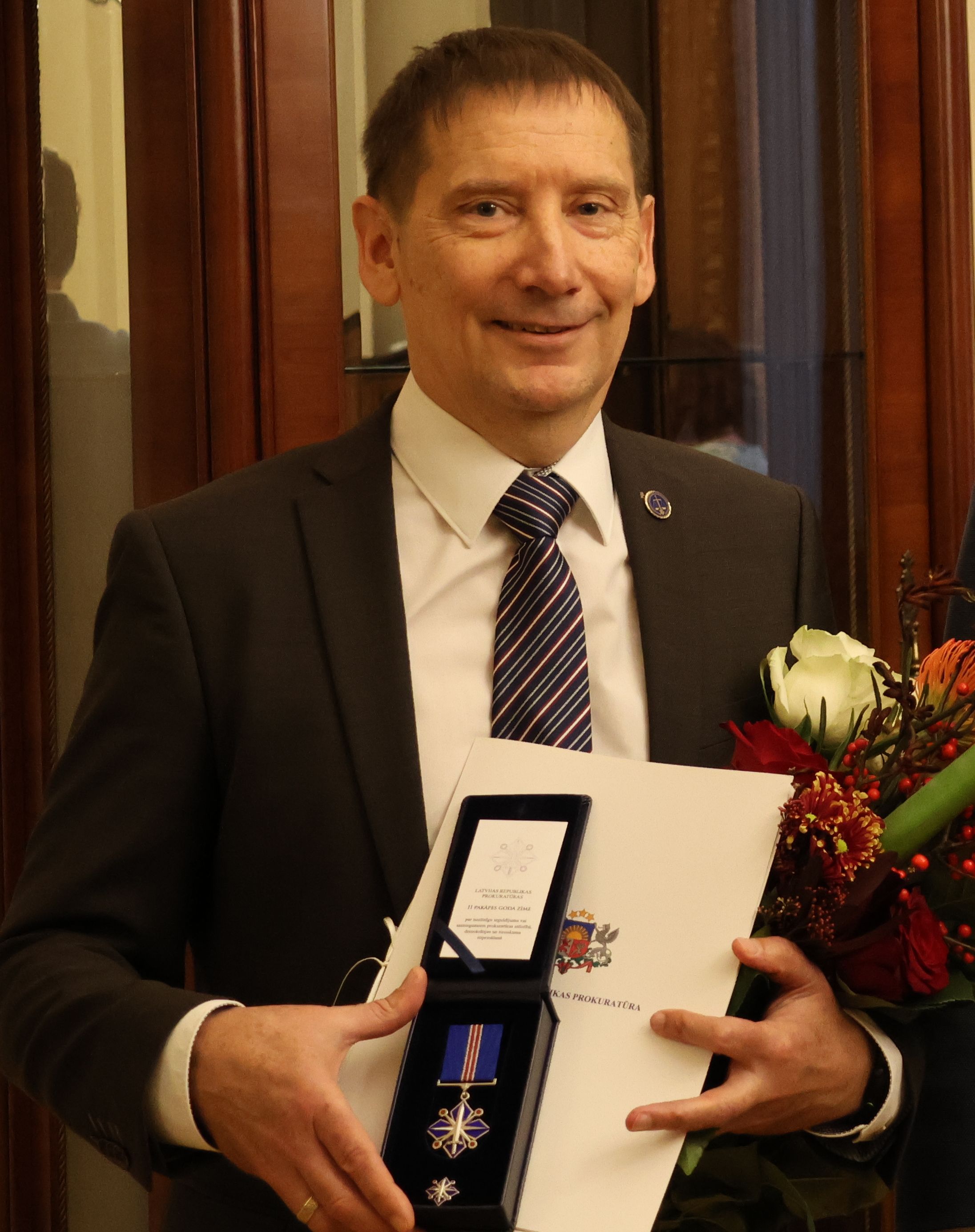 Prokuroram Jurim Ločmelim pasniedz Prokuratūras III pakāpes Goda zīmi