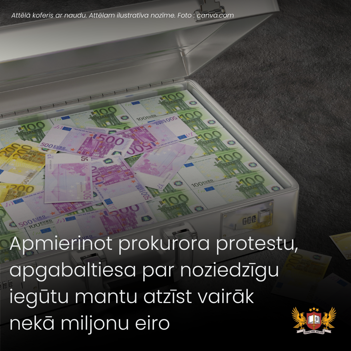 Apmierinot prokurora protestu, apgabaltiesa par noziedzīgu iegūtu mantu atzīst vairāk nekā miljonu eiro