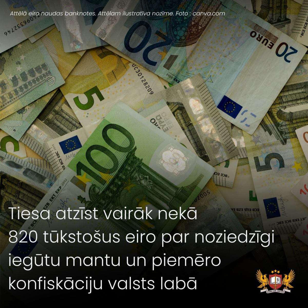 Tiesa atzīst vairāk nekā 820 tūkstošus eiro par noziedzīgi iegūtu mantu un piemēro konfiskāciju valsts labā