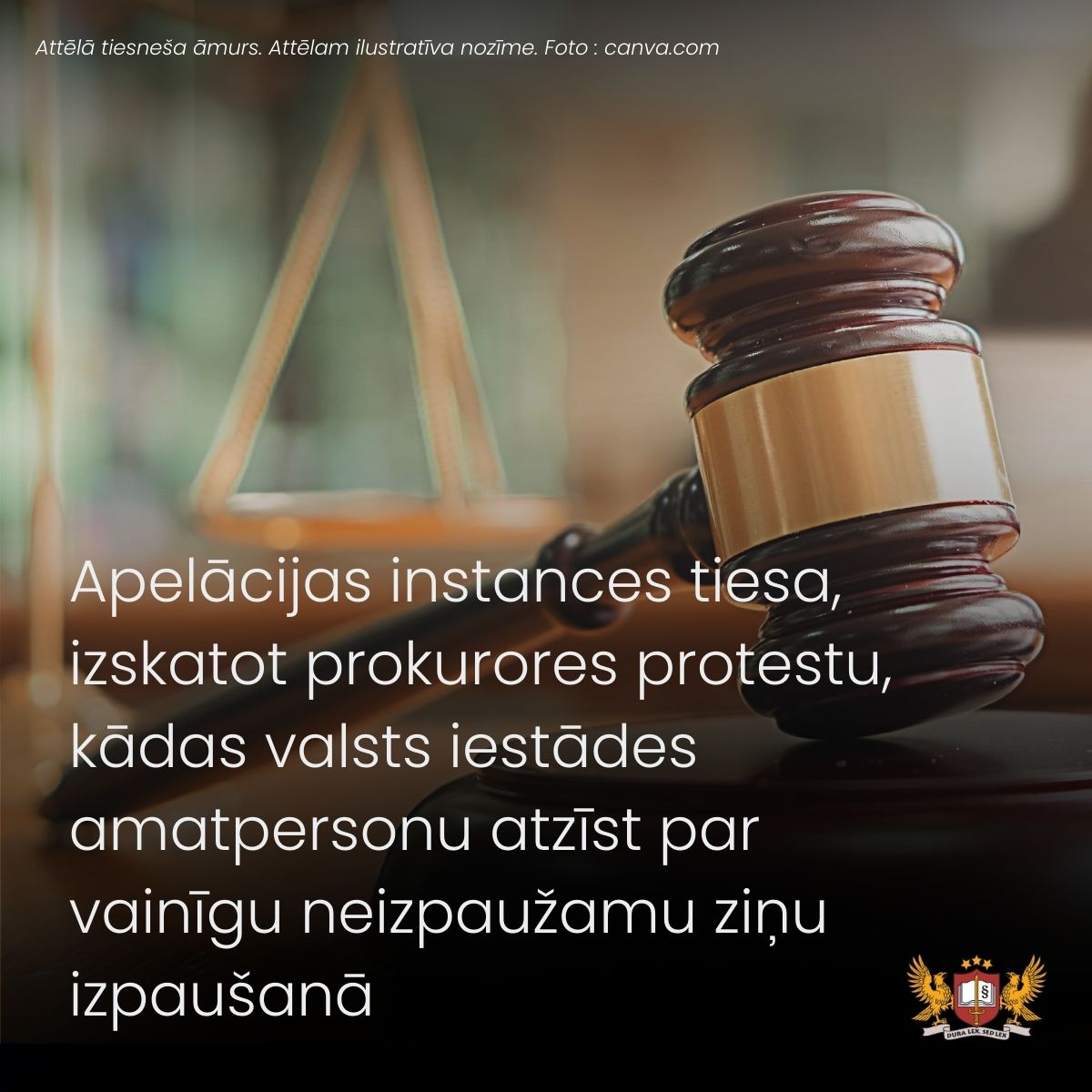 Apelācijas instances tiesa, izskatot prokurores protestu, kādas valsts iestādes amatpersonu atzīst par vainīgu neizpaužamu ziņu izpaušanā
