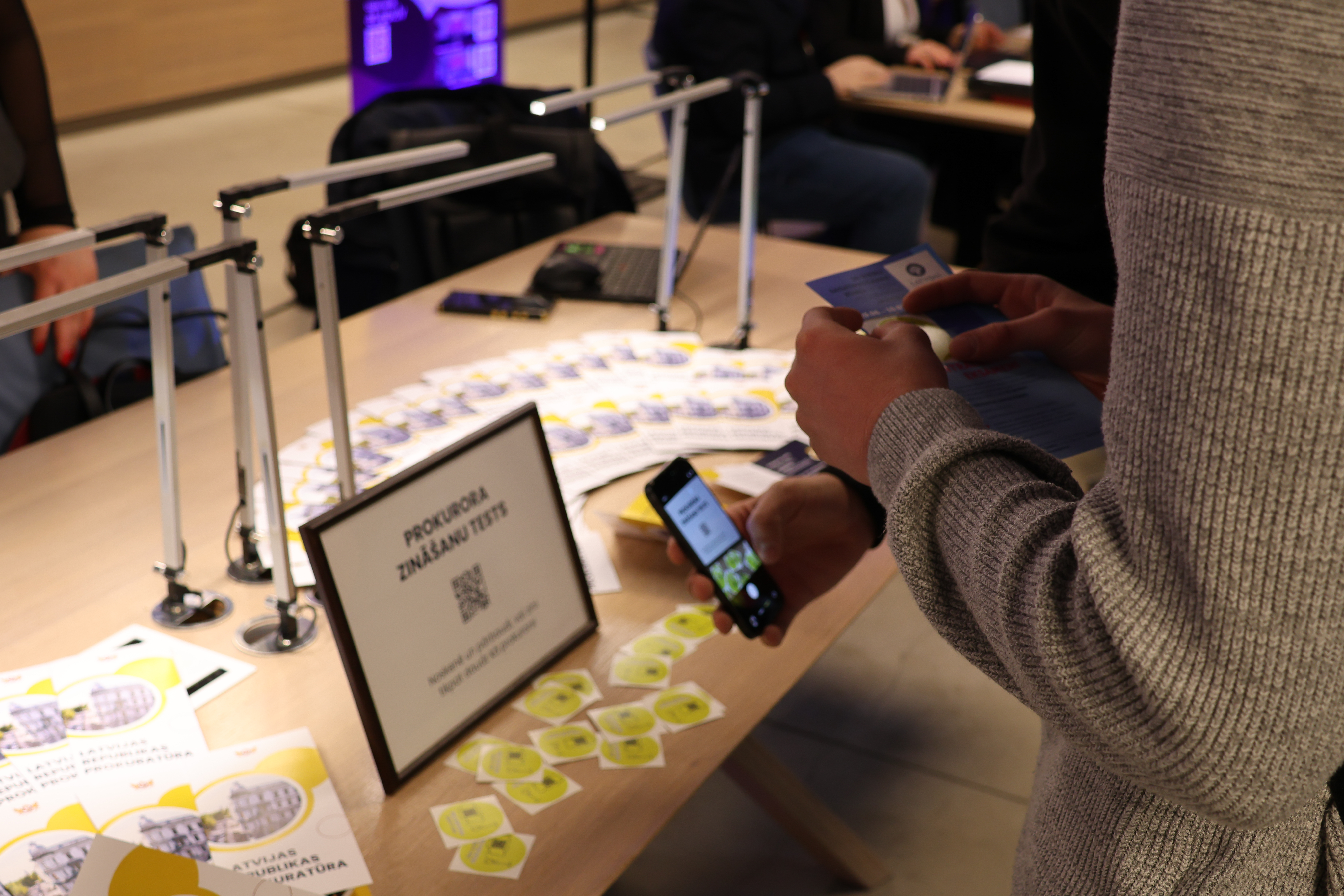 Jauniešiem bija iespēja izzināt prokurora amata specifiku un aizpildīt nelielu prokurora zināšanu testu, lai iegūtu priekštatu par pārbaudījumiem, kas jāpārvar ceļā uz prokurora amatu.