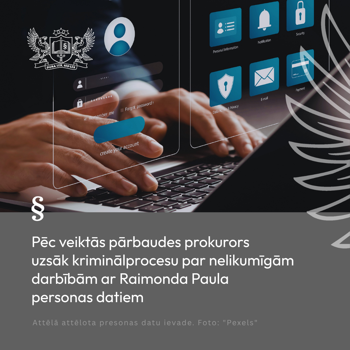 Pēc veiktās pārbaudes prokurors uzsāk kriminālprocesu par nelikumīgām darbībām ar Raimonda Paula personas datiem