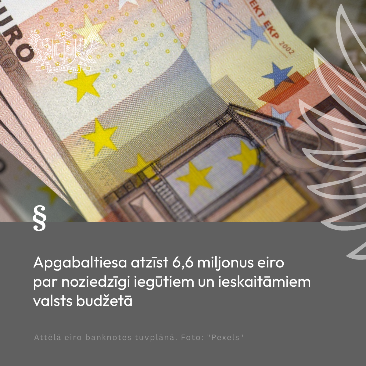 Apgabaltiesa atzīst 6,6 miljonus eiro par noziedzīgi iegūtiem un ieskaitāmiem valsts budžetā