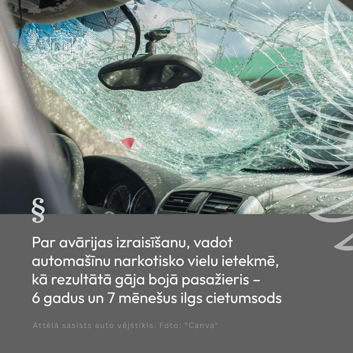 Par avārijas izraisīšanu, vadot automašīnu narkotisko vielu ietekmē, kā rezultātā gāja bojā pasažieris – 6 gadus un 7 mēnešus ilgs cietumsods