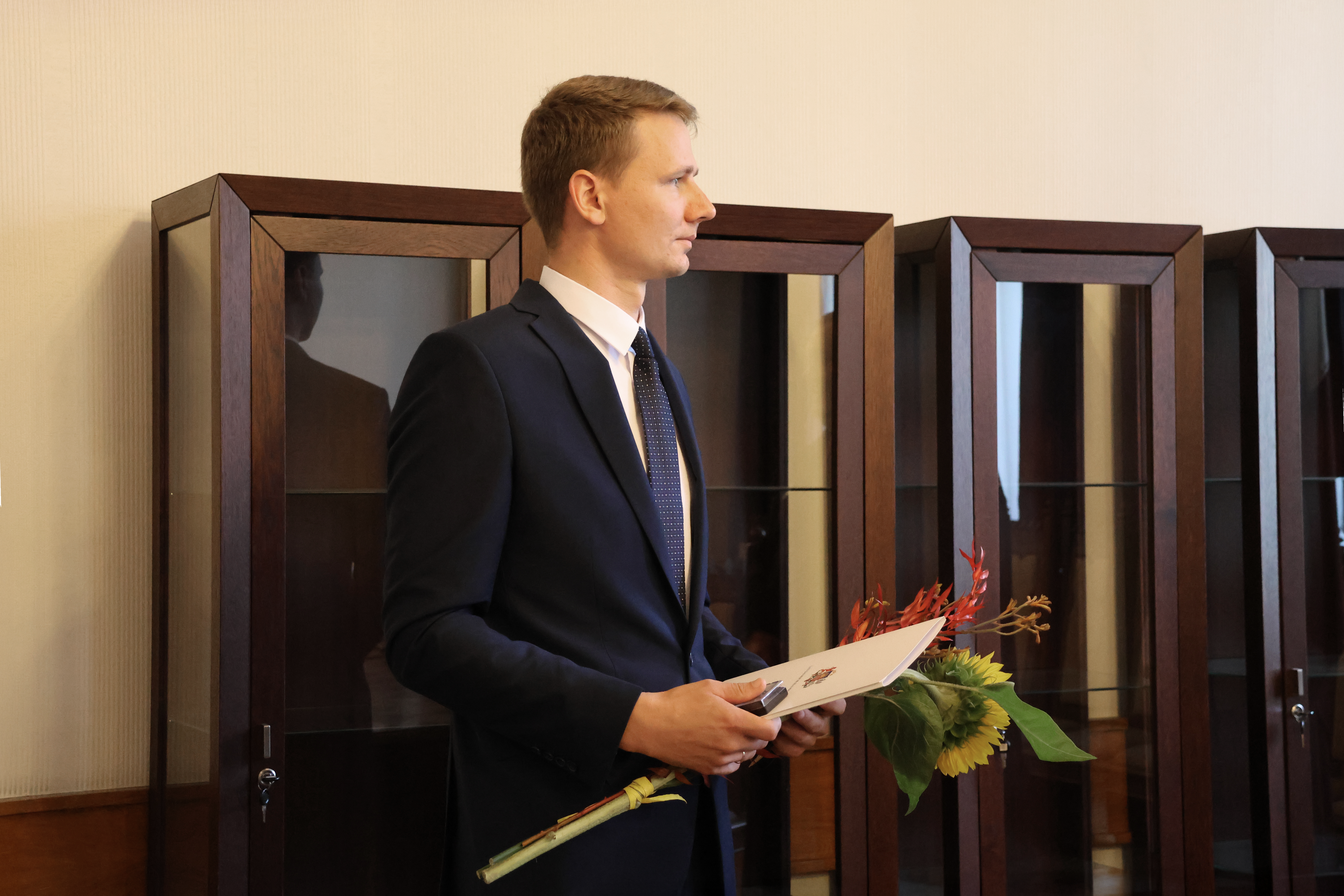 Arvīds Kalniņš pauda prieku par Vidzemes prokuratūras rindu papildināšanu, novēlot jaunajam prokuroram izturību, veselību un veiksmīgu un ilglaicīgu karjeru prokuratūrā. Viņš mudināja vienmēr atcerēties zvēresta tekstu un izsvērti un atbildīgi pieņemt lēmumus, jo katrs no tiem ietekmē kāda cilvēka likteni. Vienlaikus Arvīds Kalniņš aicināja nebaidīties lūgt padomu kolēģiem un risināt juridiski sarežģītas situācijas.