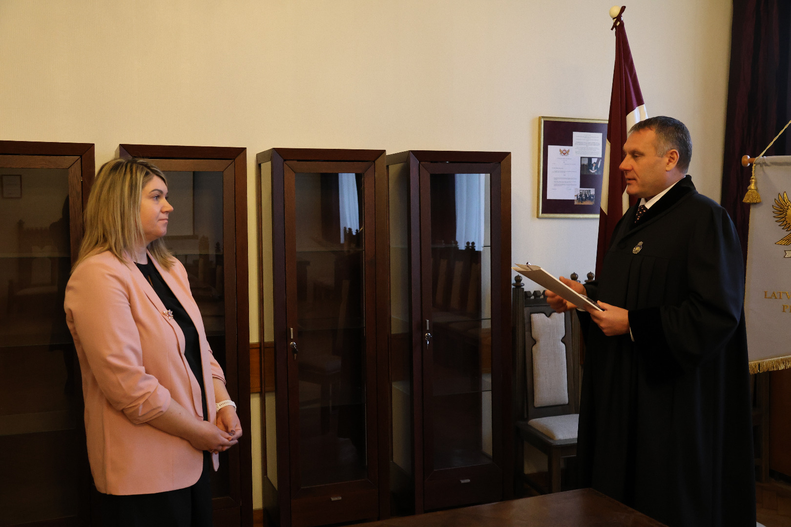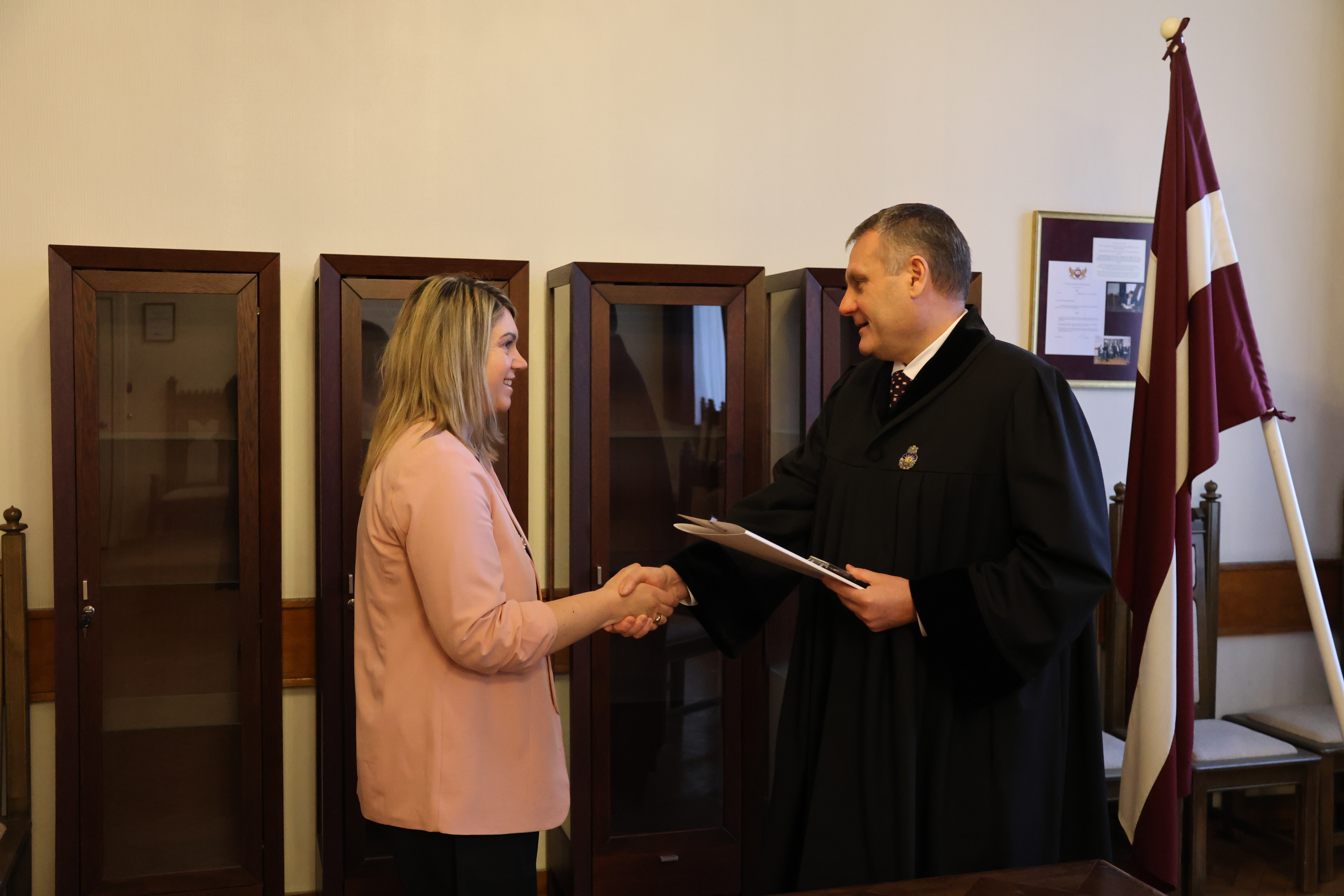 “Apsveicu Jūs ar pievienošanos mūsu kolektīvam. Liels prieks, ka Jūs esat izvēlējusies šo profesiju,” uzrunājot jauno prokurori, teica ģenerālprokurors.