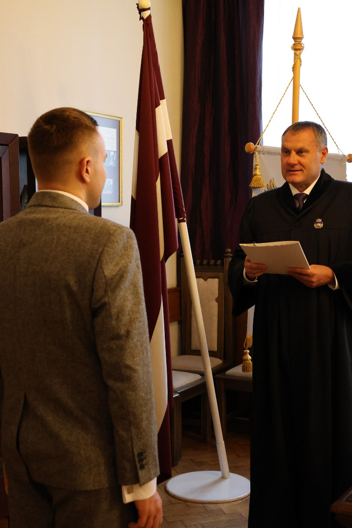 Prokurora zvēresta nodošanā sveikt kolēģi bija ieradies Noziedzīgu nodarījumu valsts institūciju dienestā izmeklēšanas prokuratūras virsprokurors Jānis Omuls.