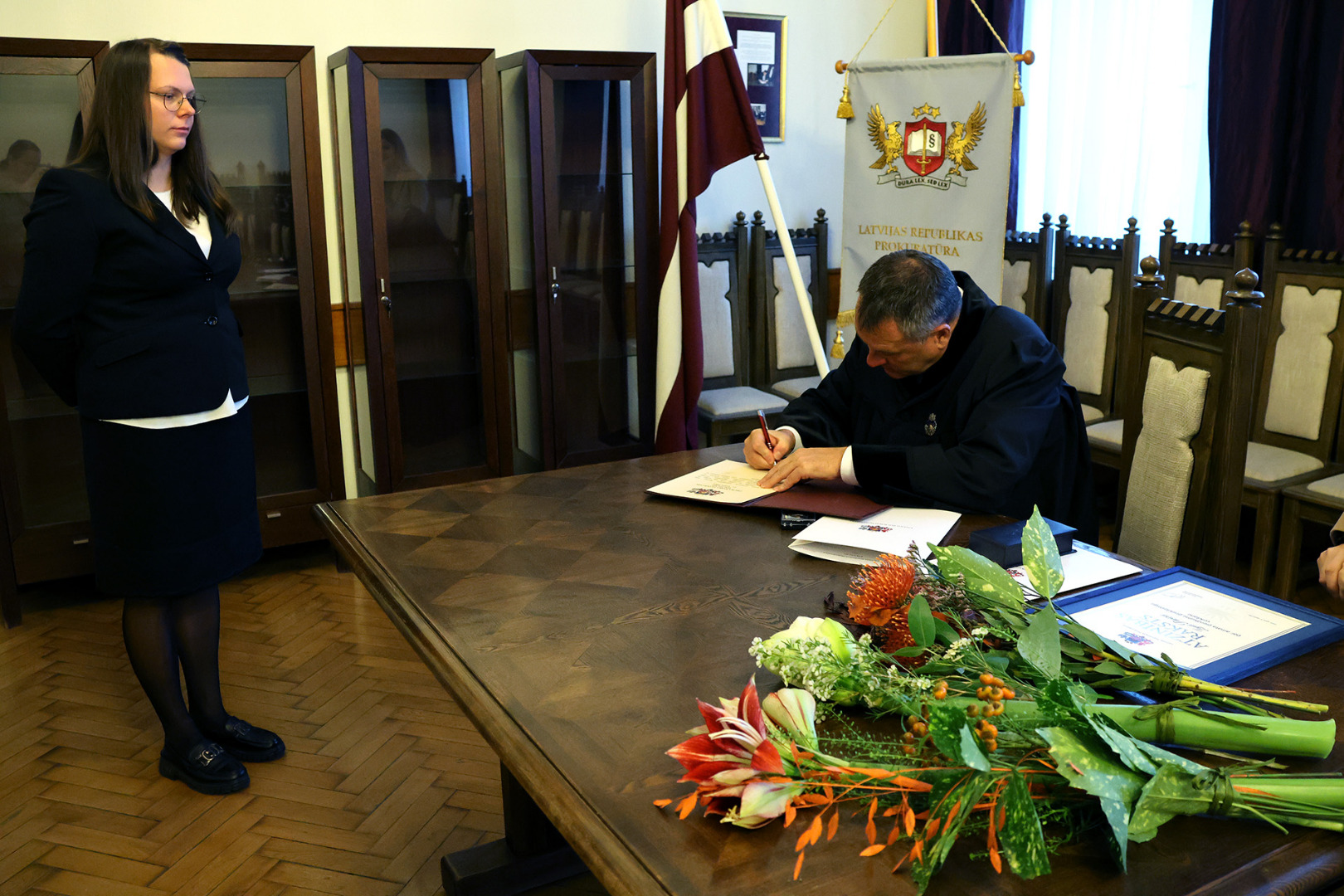 Prokurori svinīgajā brīdī sveikt bija ieradies arī Rīgas Pārdaugavas prokuratūras prokurors Aleksandrs Miļuhins.
