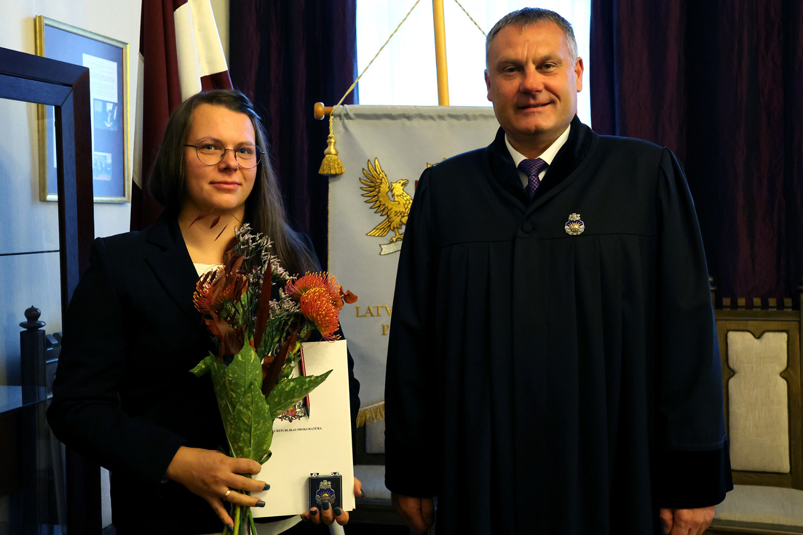 “Apsveicu jūs ar pievienošanos mūsu komandai un novēlu veiksmīgu profesionālo darbību!” prokurorei vēlēja ģenerālprokurors Juris Stukāns.