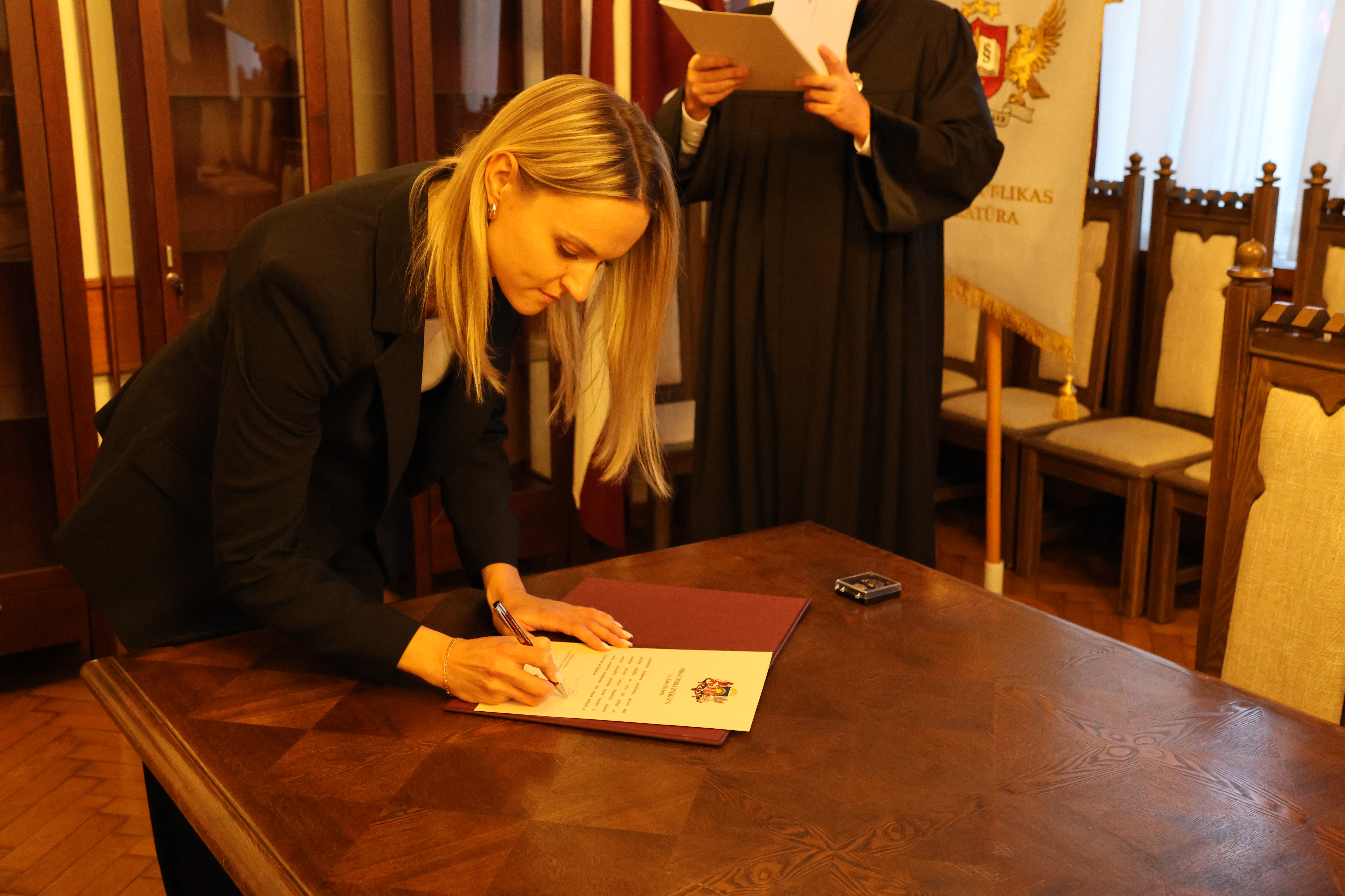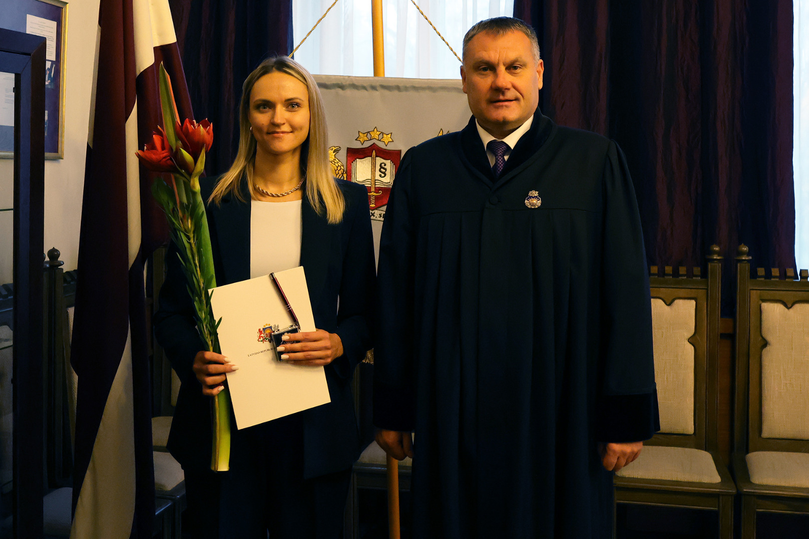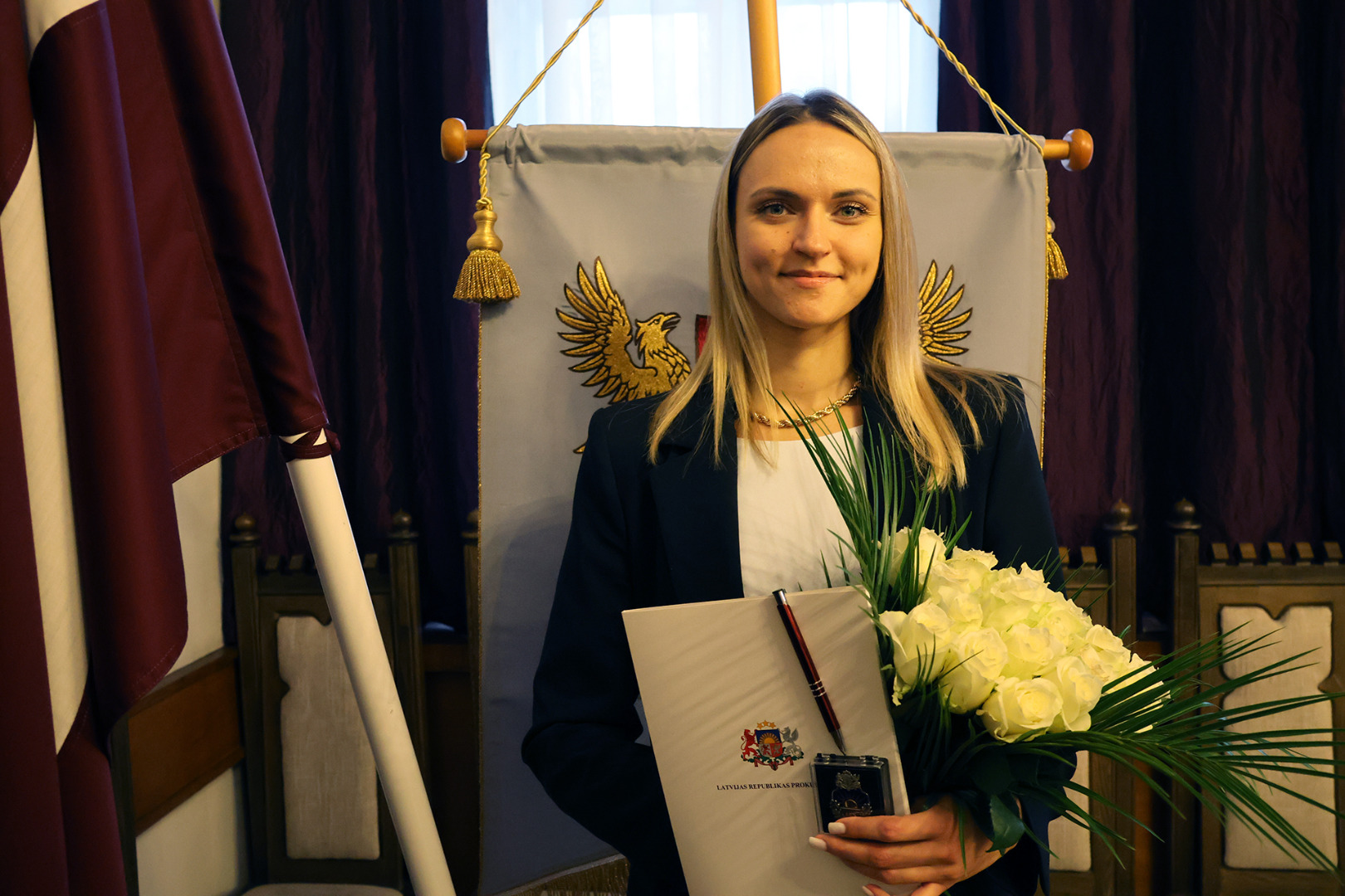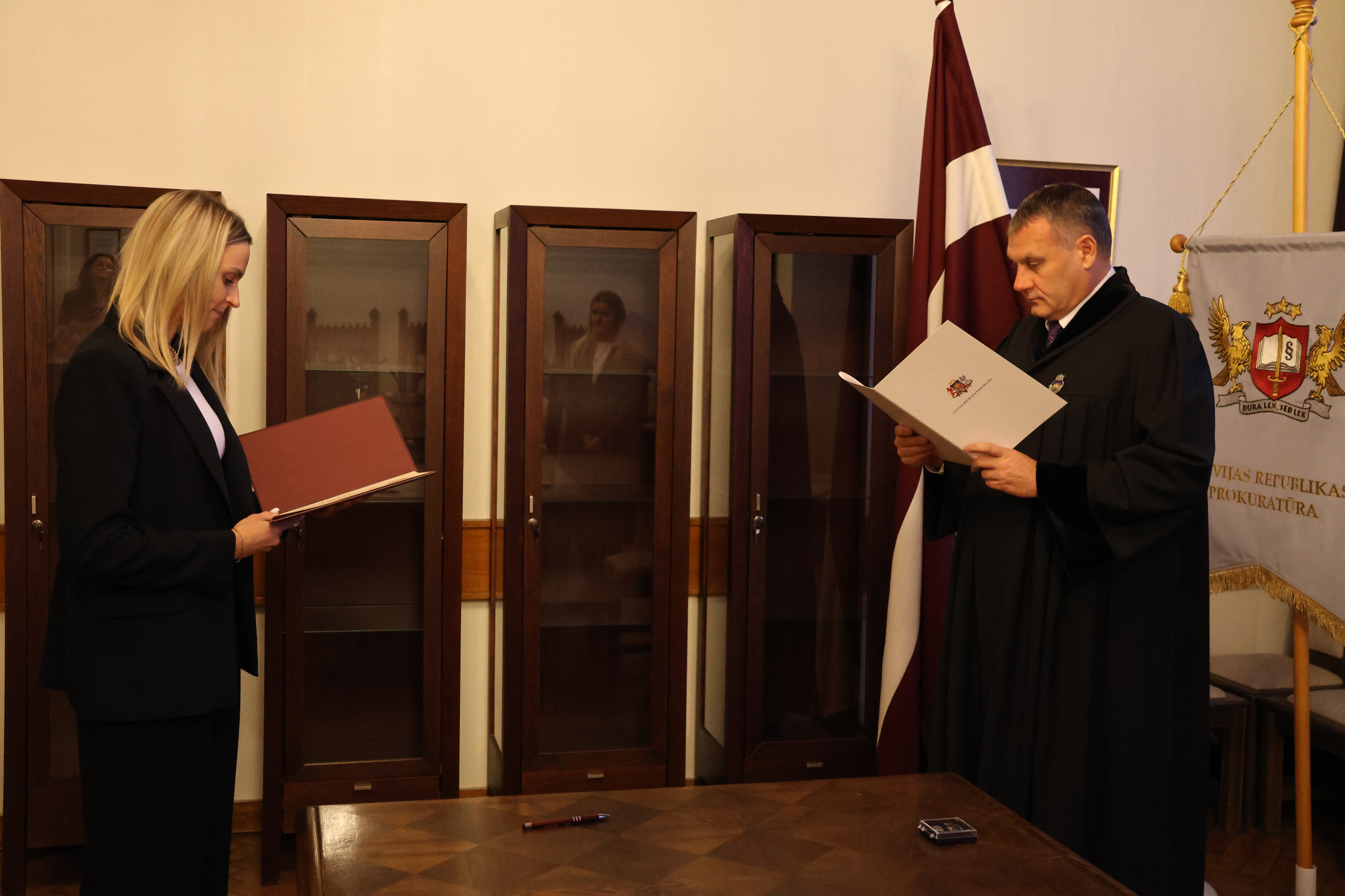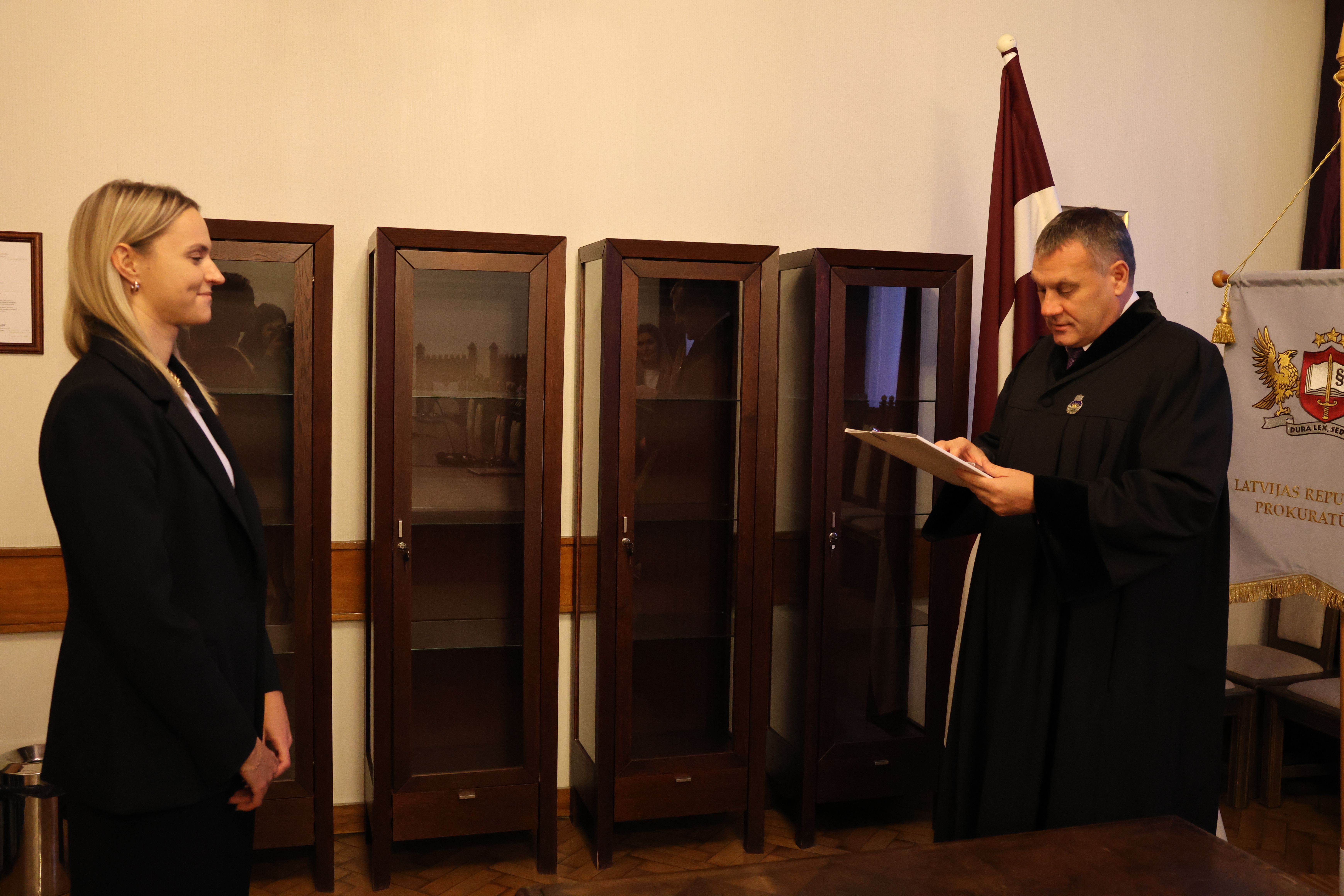 “Paldies, ka pievienojaties prokuroru saimei. Prokuratūra ļoti bieži ir sabiedrības uzmanības centrā, sabiedrība sagaida taisnīgu, tiesisku un savlaicīgu mūsu darba rezultātu, un mums ir jāspēj to nodrošināt, tāpēc ir ļoti svarīgi, ka prokuratūrai pievienojas jauni, zinoši strādāt griboši cilvēki,” uzrunājot prokurori, sacīja ģenerālprokurors.