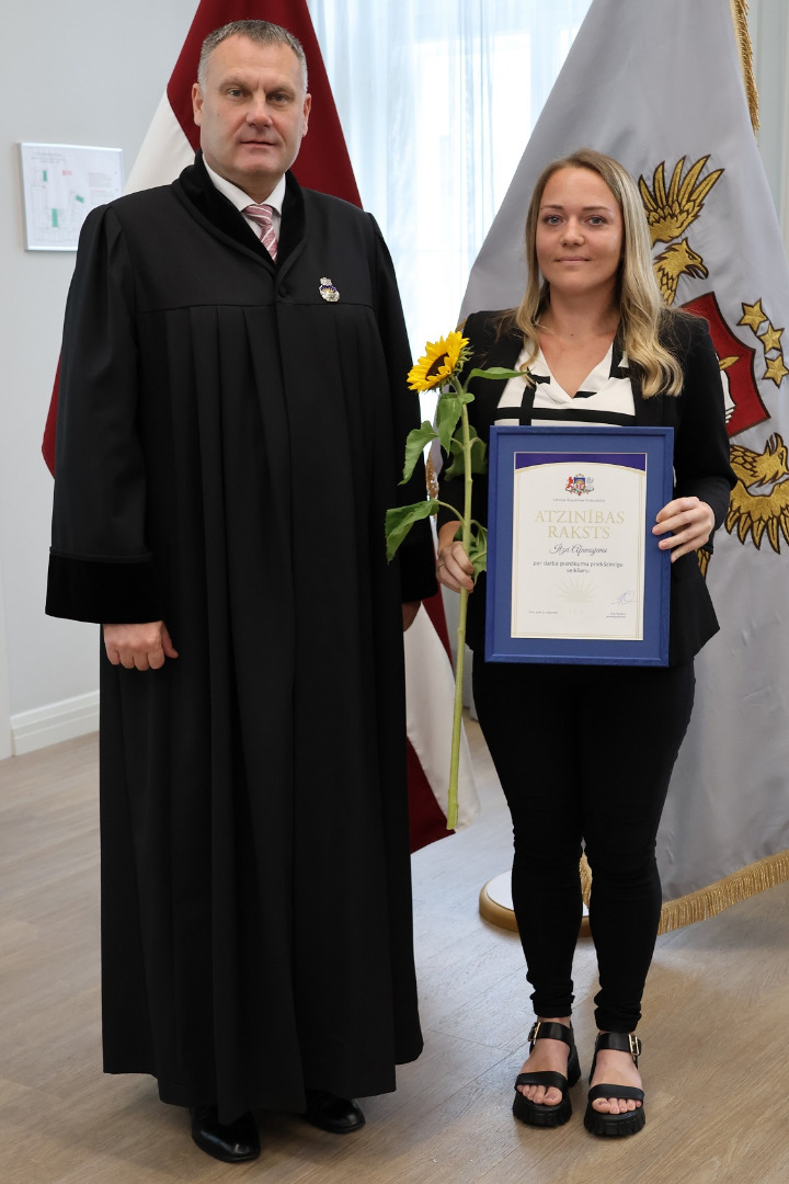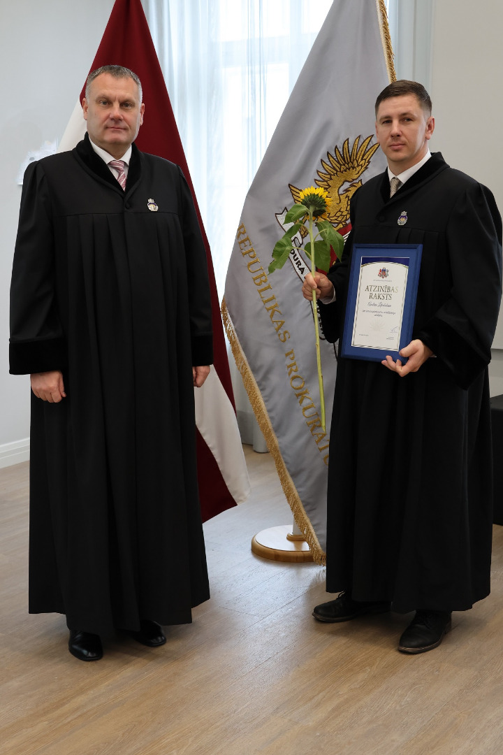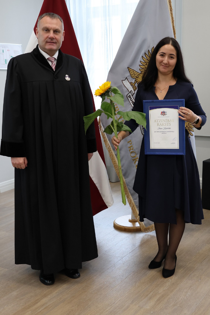 Pateicības raksts par ar ilggadēju un nevainojamu darbu prokuratūrā tika pasniegts Rietumzemgales prokuratūras prokurora palīdzei Ingrīdai Grantai, Austrumzemgales prokuratūras prokurora palīdzei Aijai Jansonei, Vidzemes prokuratūras prokurora palīdzei Gunitai Elksnītei, Dienvidlatgales prokuratūras prokurora palīdzēm Evitai Kuzmičai, Olgai Vasilenokai, Ingai Šnevelei un tulcei Anitai Blaževičai un autovadītājam Valdim Čerpakovskim.