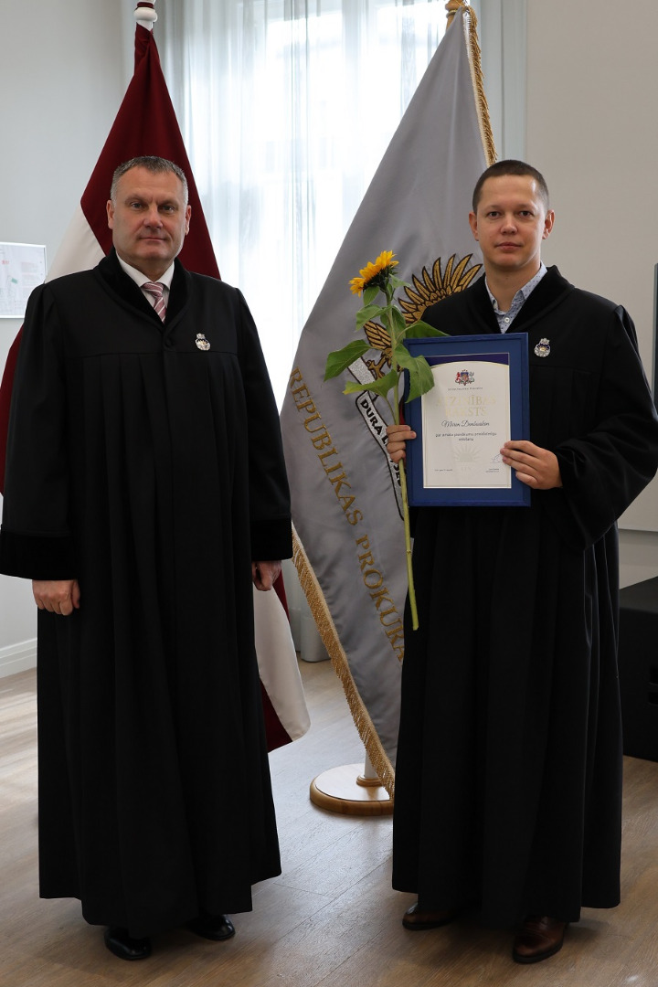 Atzinības rakstu par amata pienākumu priekšzīmīgu veikšanu saņēma Ģenerālprokuratūras Krimināltiesiskā departamenta Noziedzīgi iegūtu līdzekļu legalizēšanas apkarošanas koordinācijas nodaļas prokurore Kristīna Grunte, Rīgas tiesas apgabala prokuratūras prokurori Jānis Baumanis, Zane Pavāre un Roberts Milbergs, Pierīgas prokuratūras prokurori Dmitrijs Smorodins un Gunta Pudnika, Rīgas Ziemeļu prokuratūras prokurori Andris Litenboks, Māris Dembovskis un Diāna Bottere, Austrumzemgales prokuratūras prokurori Kristaps Kalniņš, Agnese Karaseva un Jānis Duberis, Rietumzemgales prokuratūras prokurors Valdis Naglis, Latgales tiesas apgabala prokurore Oksana Baško, Dienvidlatgales prokuratūras prokurores Inese Slūka un Ilona Jermaševiča, Nodokļu un muitas lietu prokuratūras prokurore Dace Capara un Vidzemes prokuratūras prokurore Solvita Kristapa.