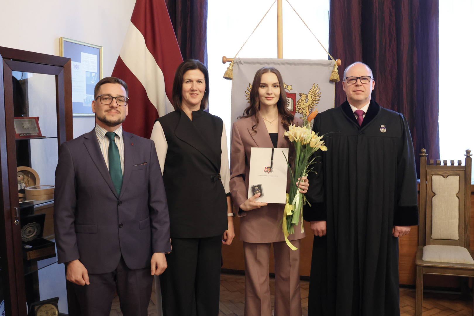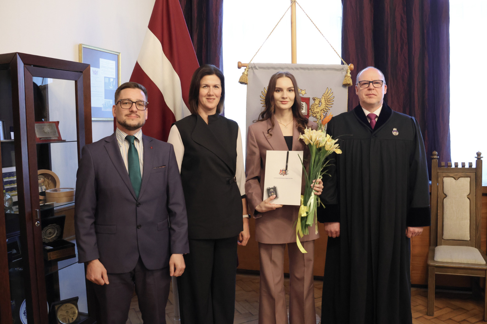“Ņemot vērā to attieksmi, kas izstaro no Tevis, man nav nekādu šaubu, ka Tu esi izvēlējusies pareizo profesiju. Saglabā sevī šo attieksmi un atbildības sajūtu. Prokuroram ir piešķirta ļoti liela vara, tāpēc rīkojies ar šo varu saprātīgi un atceries, ka aiz katra Tava lēmuma ir cilvēks. Vienmēr esi taisnīga un godīga savā rīcībā, nekad nedari to, kas neatbilst Tavai pārliecībai un par ko ir sajūta, ka tas nebūs taisnīgi,” sacīja Armīns Meisters.