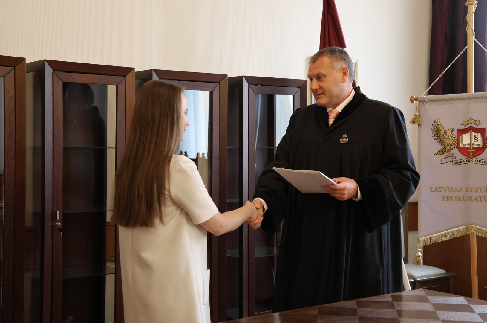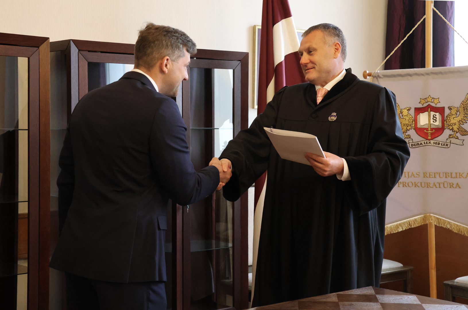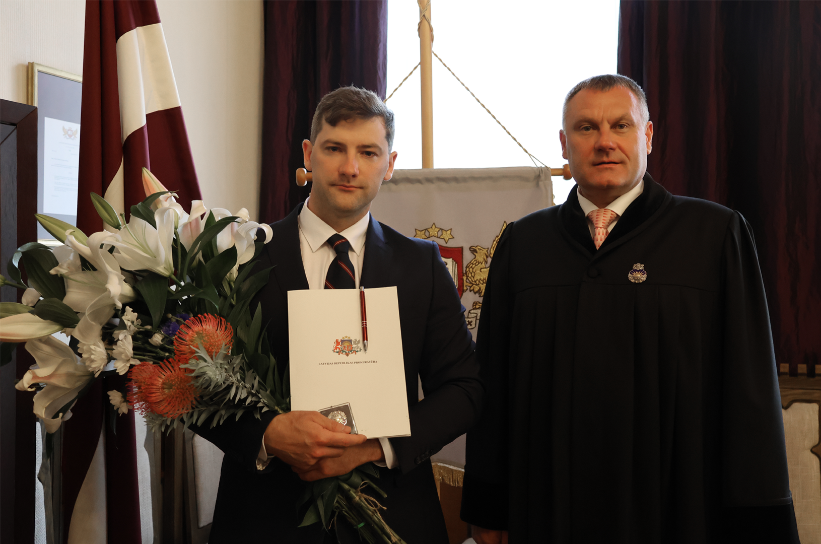 Prokurorus ar stāšanos amatā bija ieradušies sveikt arī viņu pārstāvēto struktūrvienību kolēģi.