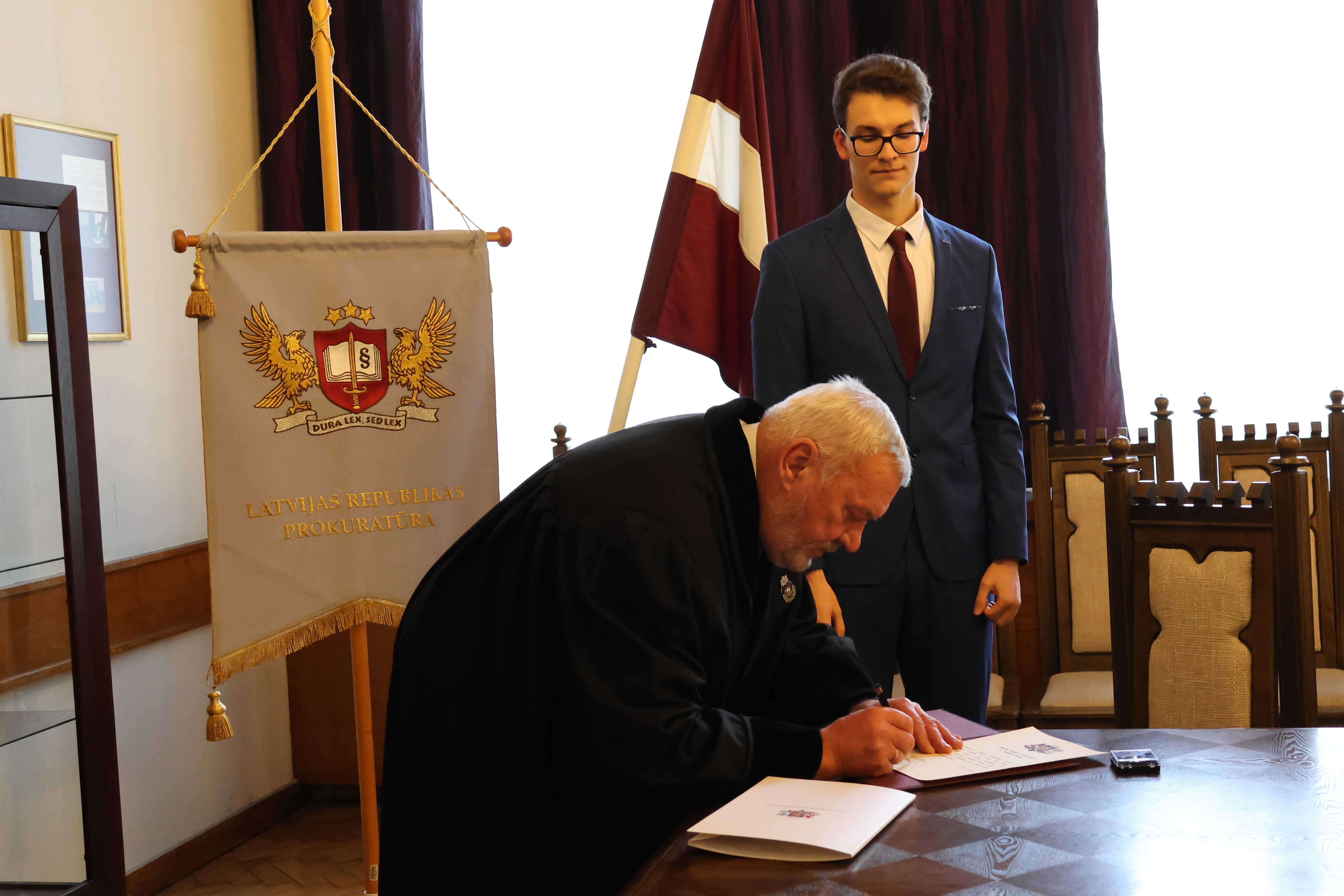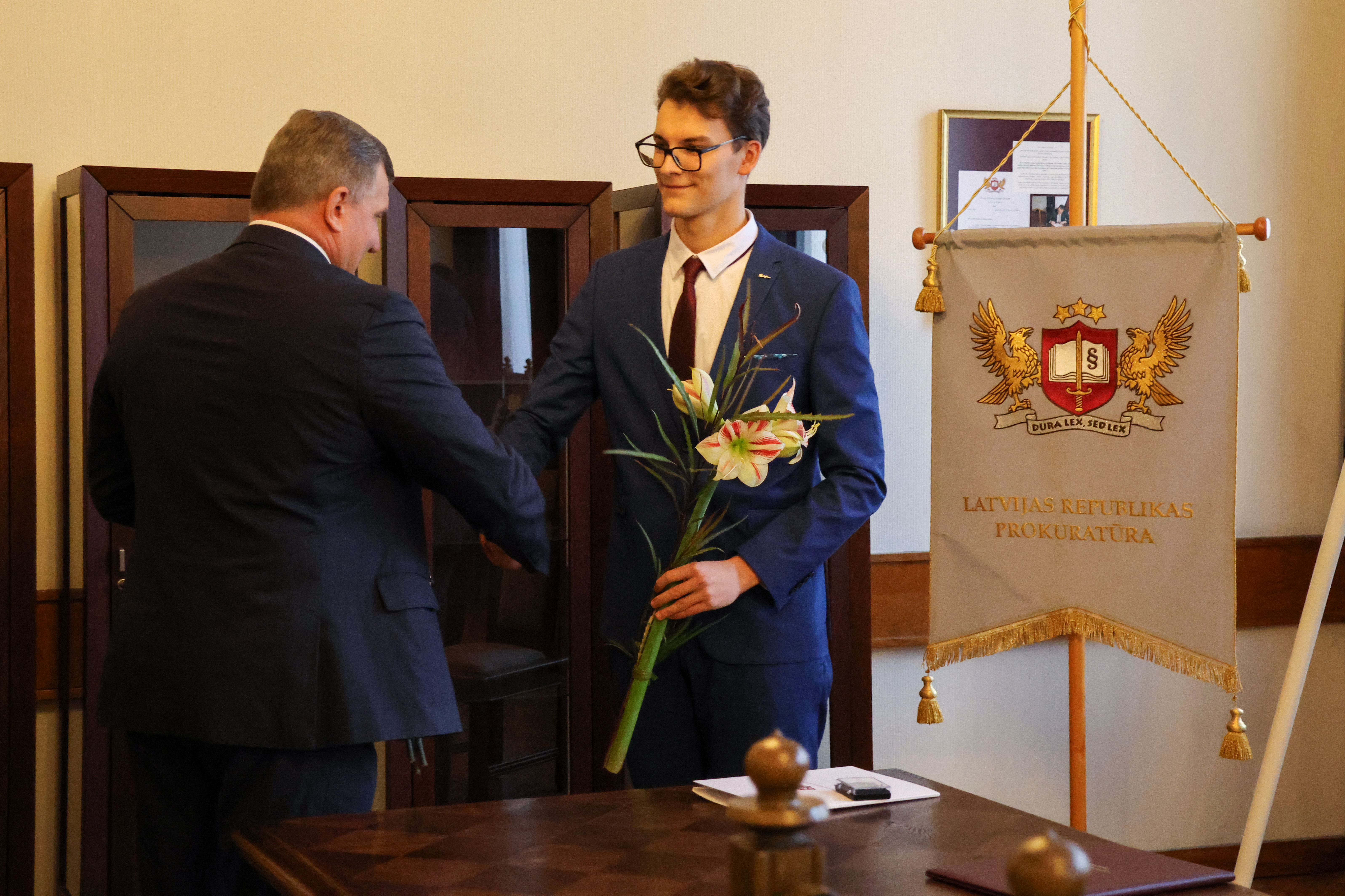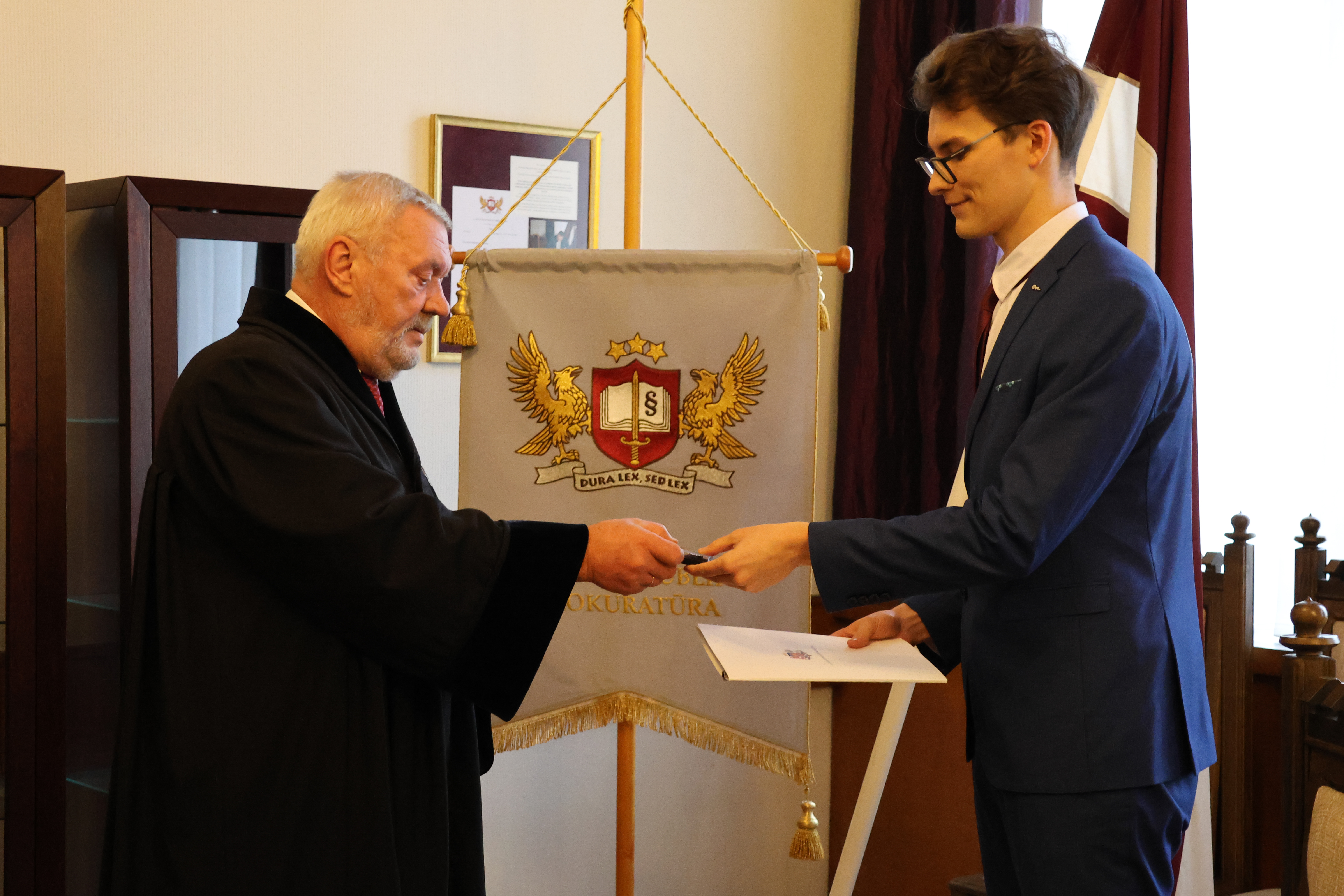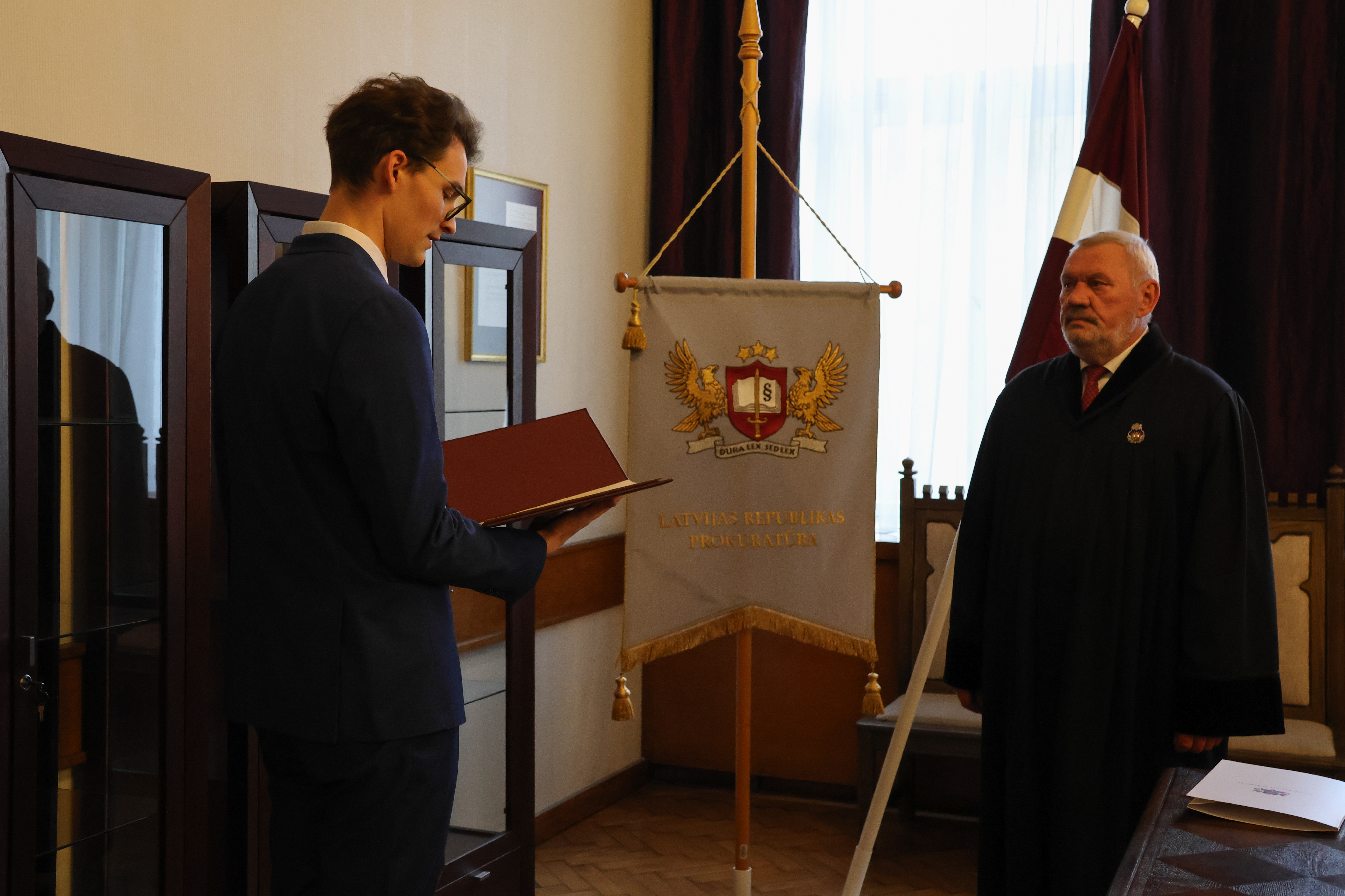 Sveikt prokuroru ar stāšanos amatā bija ieradušies arī kolēģi no prokuratūras struktūrvienībām, novēlot viņam veiksmi un izturību.