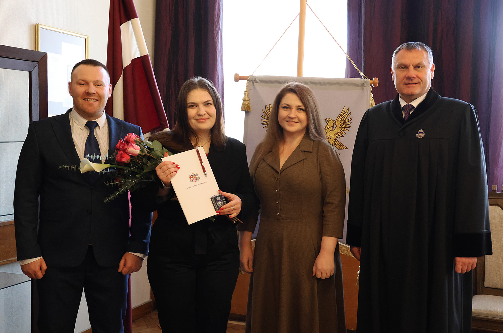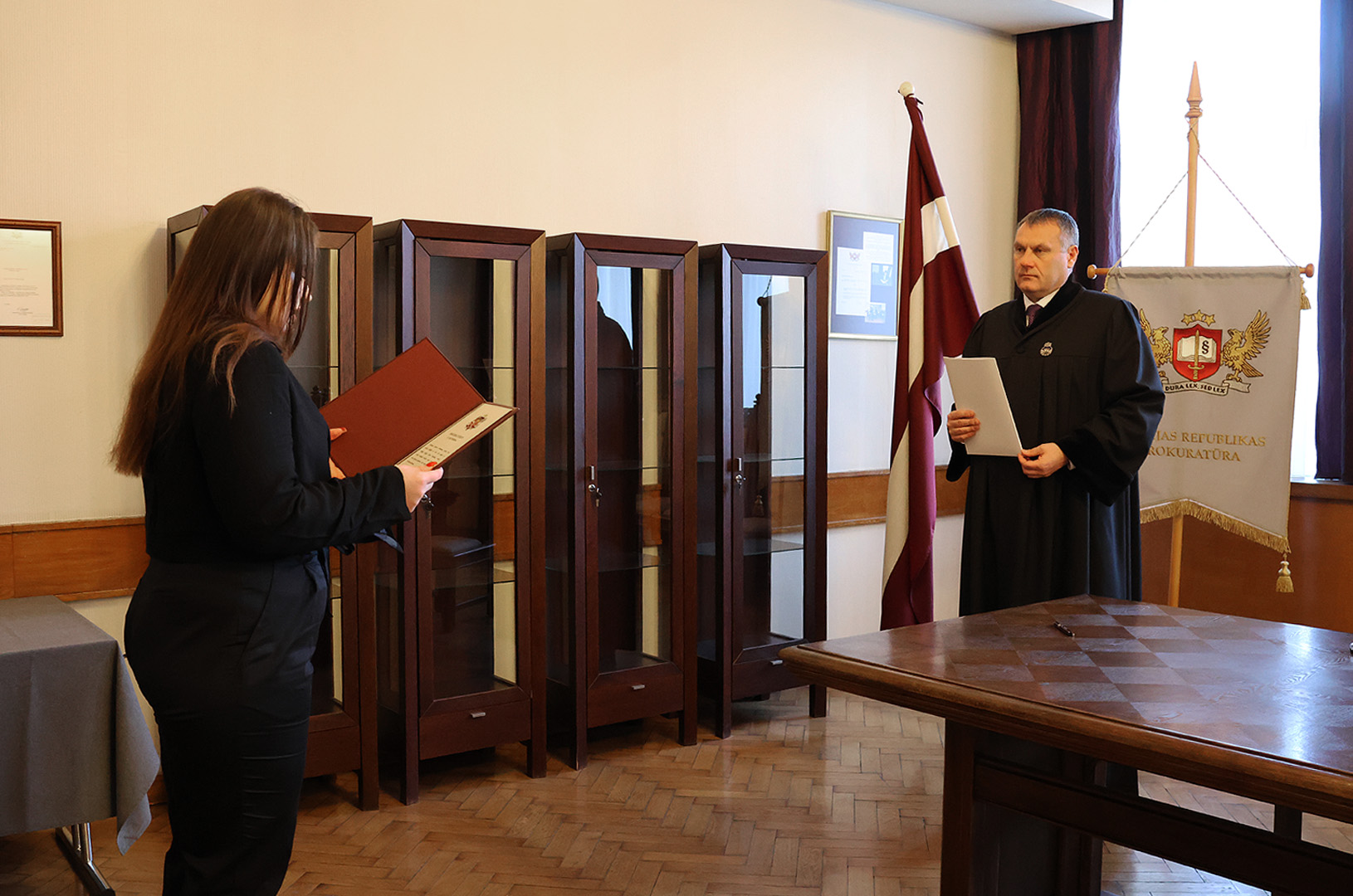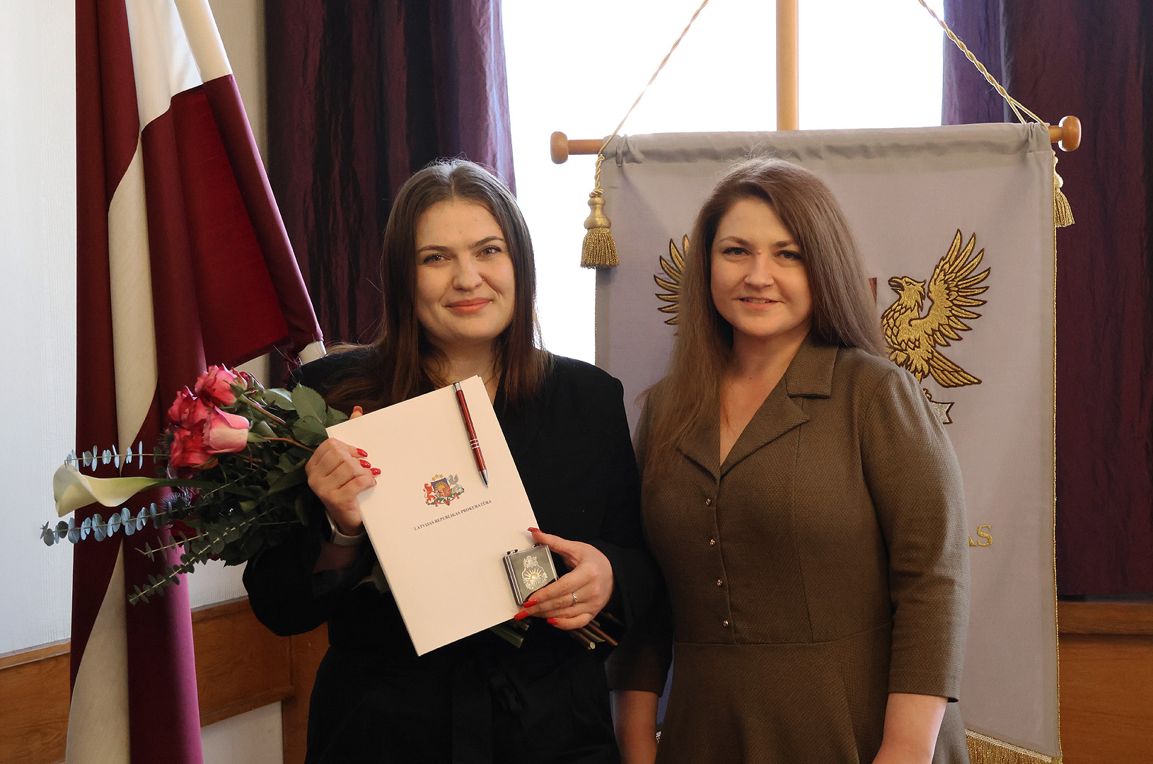 Sveikt prokurori ar stāšanos amatā bija ieradušies kolēģi no Rīgas Austrumu prokuratūras – virsprokurors Edijs Pastars un Aijas stažēšanās vadītāja, prokurore Baiba Adlere.