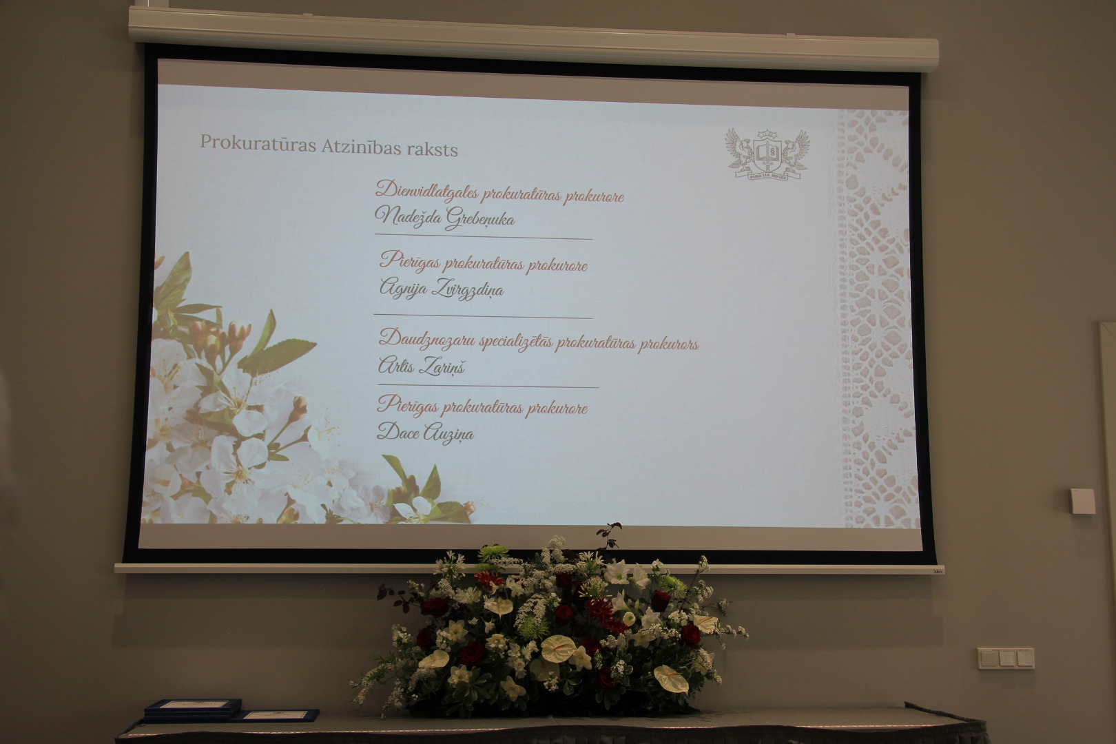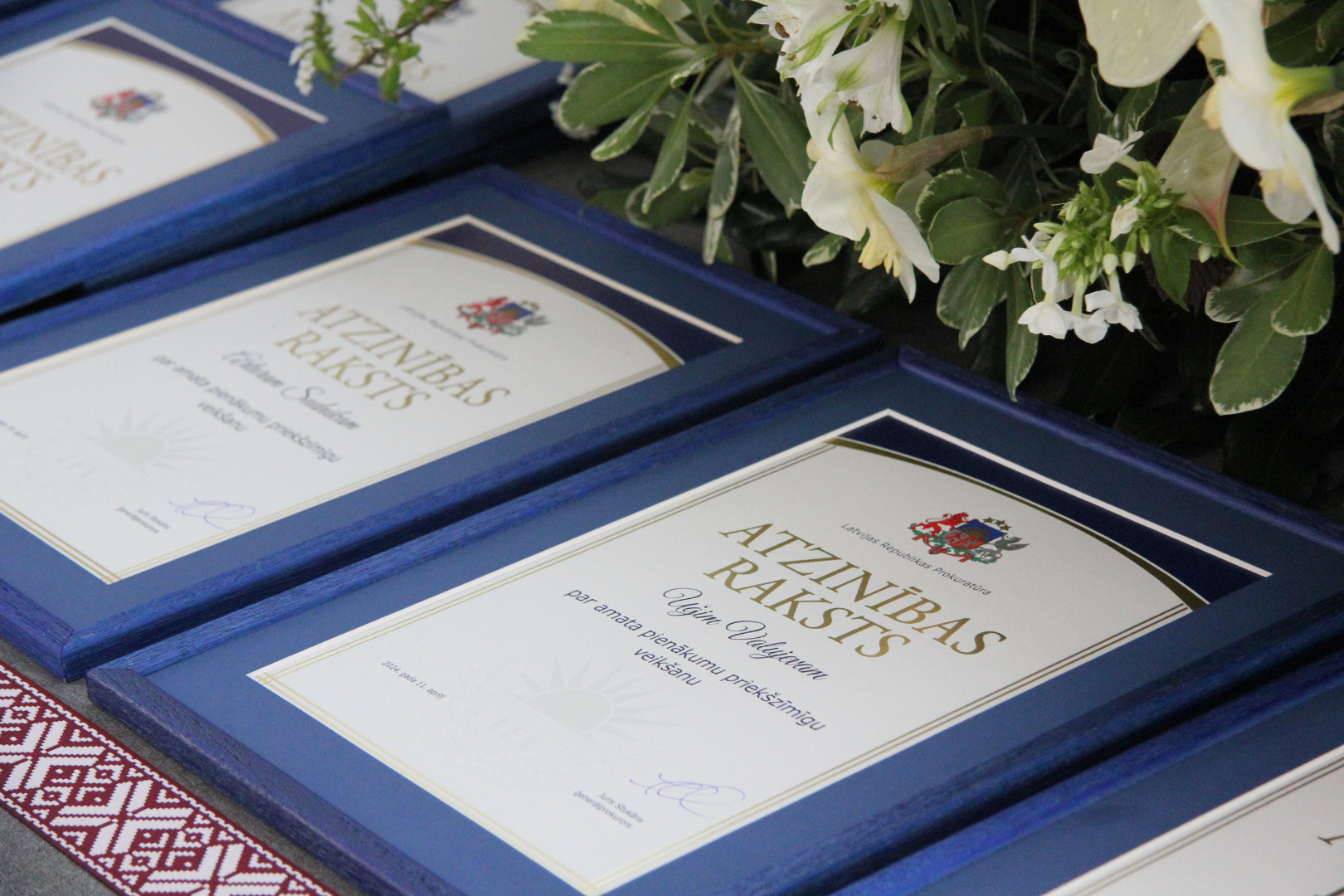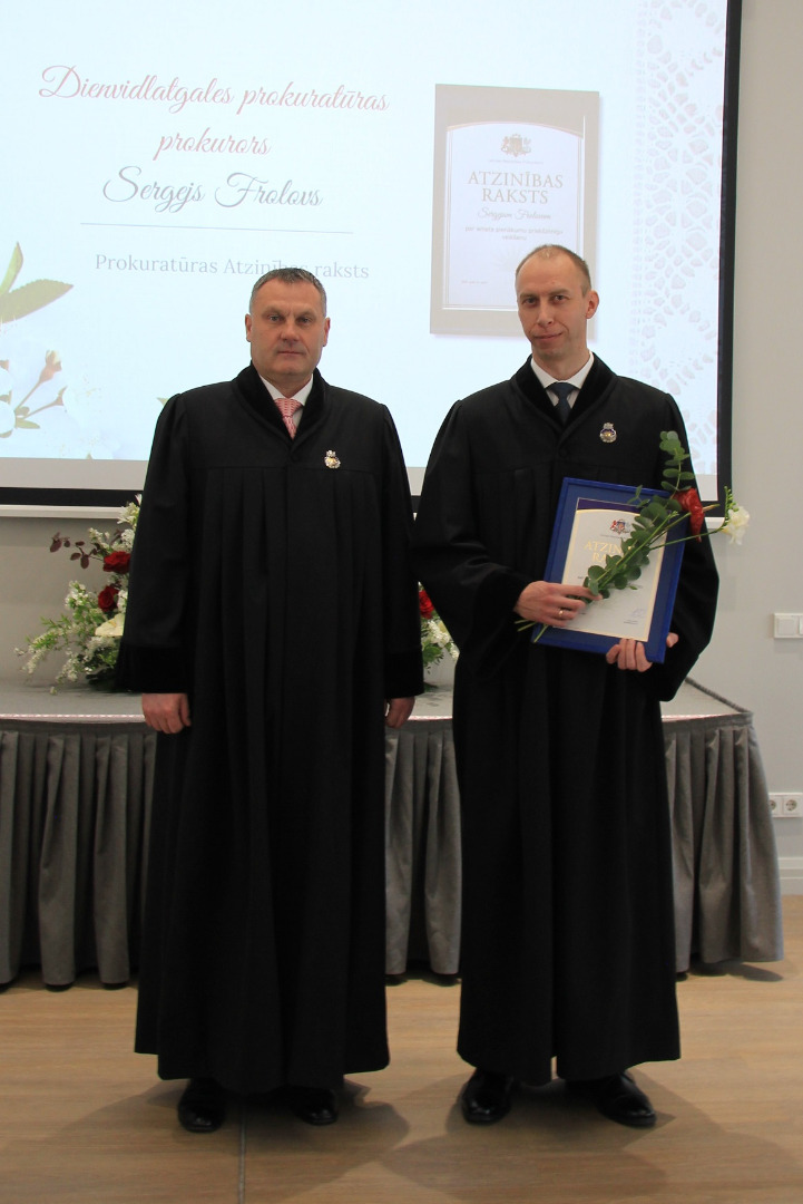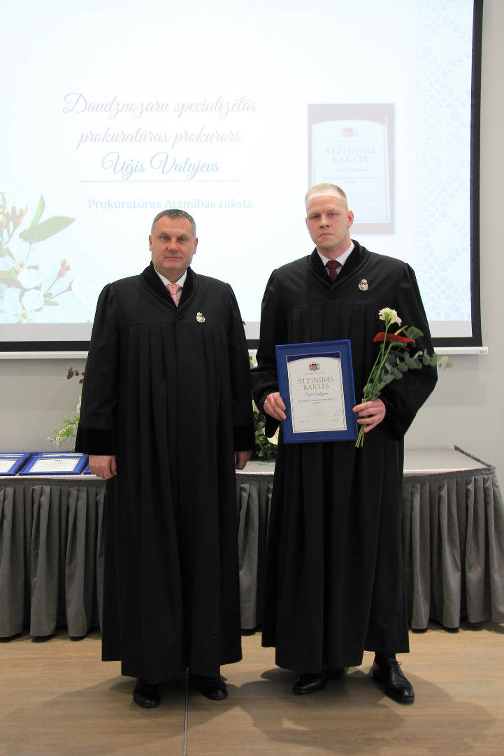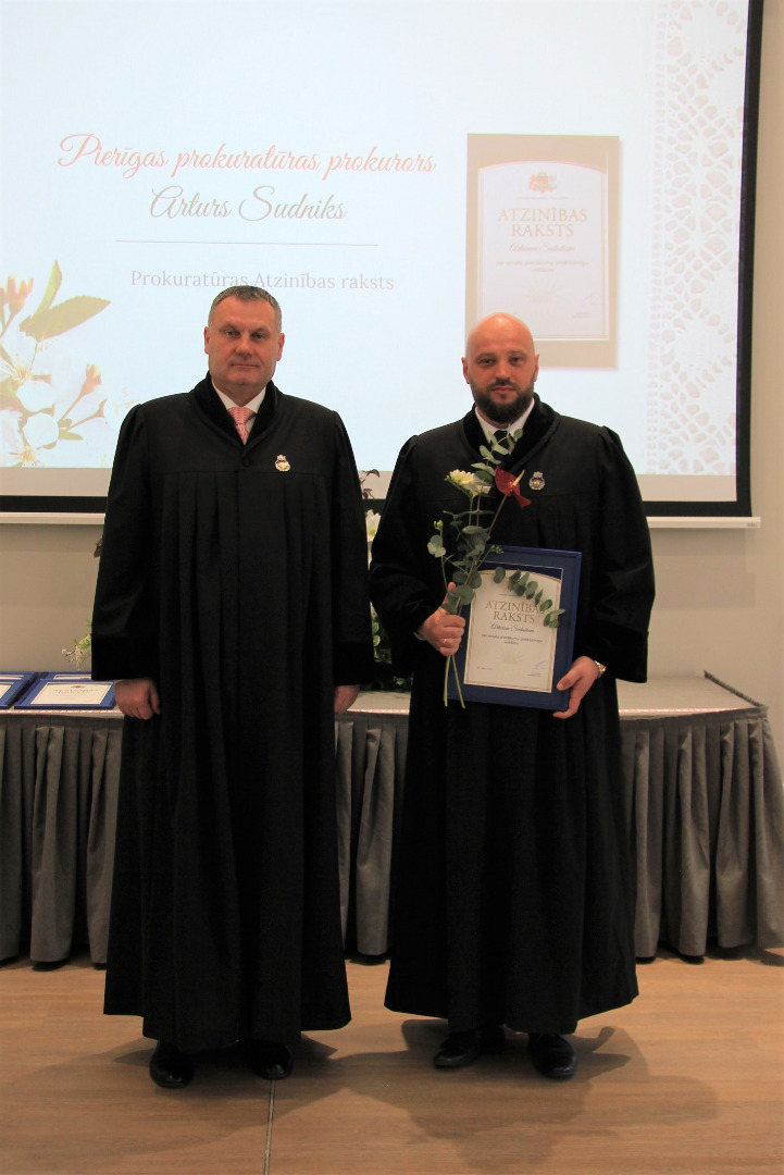 Atzinības rakstu par amata pienākumu priekšzīmīgu veikšanu saņēma Rīgas Austrumu prokuratūras virsprokurora vietnieks Edijs Pastars, Daudznozaru specializētās prokuratūras prokurori Uģis Valujevs,Katažina Careva, Sandra Katkeviča un Artis Zariņš, Vidzemes prokuratūras prokurores Sandra Kalniņa, Zane Actiņa un Gita Saulone, Pierīgas prokuratūras prokurori Arturs Sudniks, Agnija Zvirgzdiņa un Dace Auziņa,Dienvidlatgales prokuratūras prokurori Einārs Rostovs, Sergejs Frolovs un Nadežda Grebeņuka, Rīgas Ziemeļu prokuratūras prokurors Rihards Plotka.