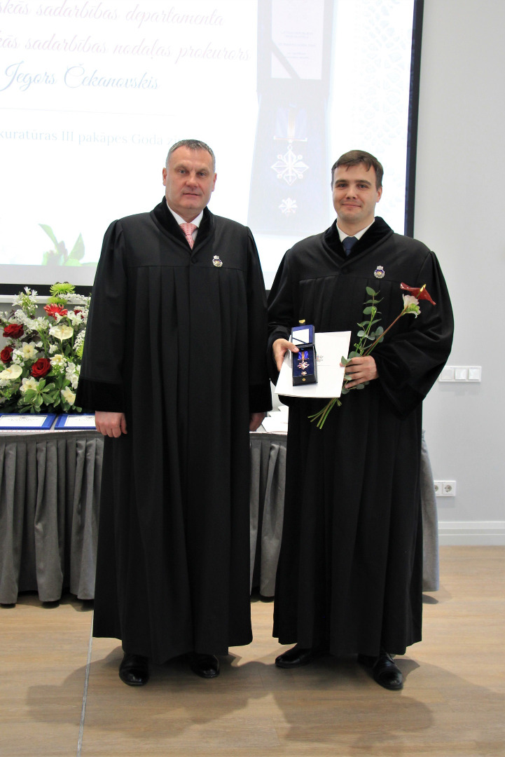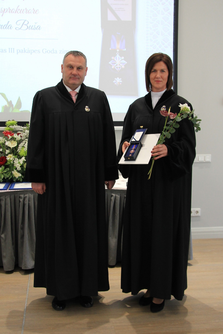 III pakāpes Goda zīme par ieguldījumu prokuratūras attīstībā piešķirta Rietumzemgales prokuratūras virsprokurorei Andai Bušai, Ģenerālprokuratūras Darbības kontroles un starptautiskās sadarbības departamenta Starptautiskās sadarbības nodaļas prokuroram Jegoram Čekanovskim, Daudznozaru specializētās prokuratūras virsprokurora vietniecei Antrai Sprudzānei,Dienvidlatgales prokuratūras virsprokurora vietniecei Aijai Zaltānei un prokurorei Jeļenai Aleksejevai, Austrumlatgales prokuratūras prokurorei Jeļenai Kalvānei.
