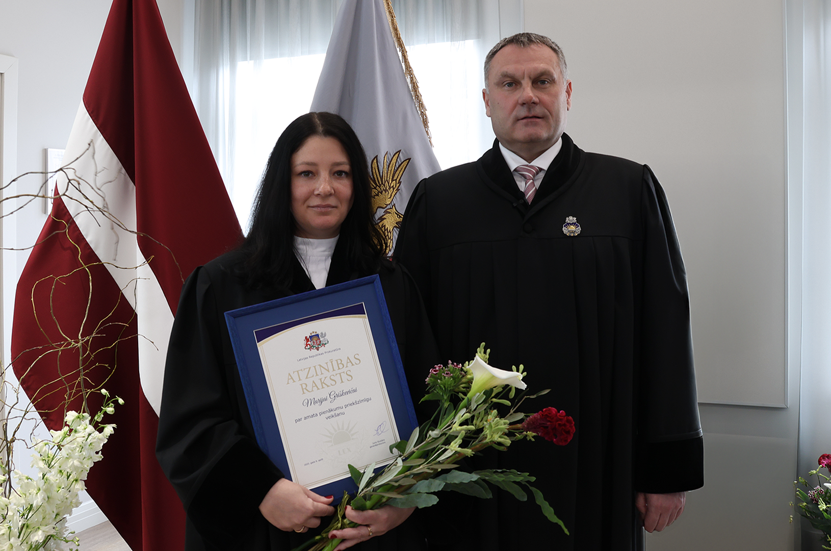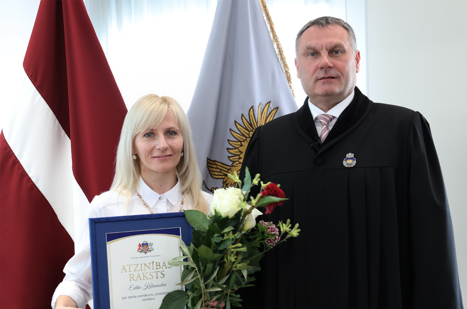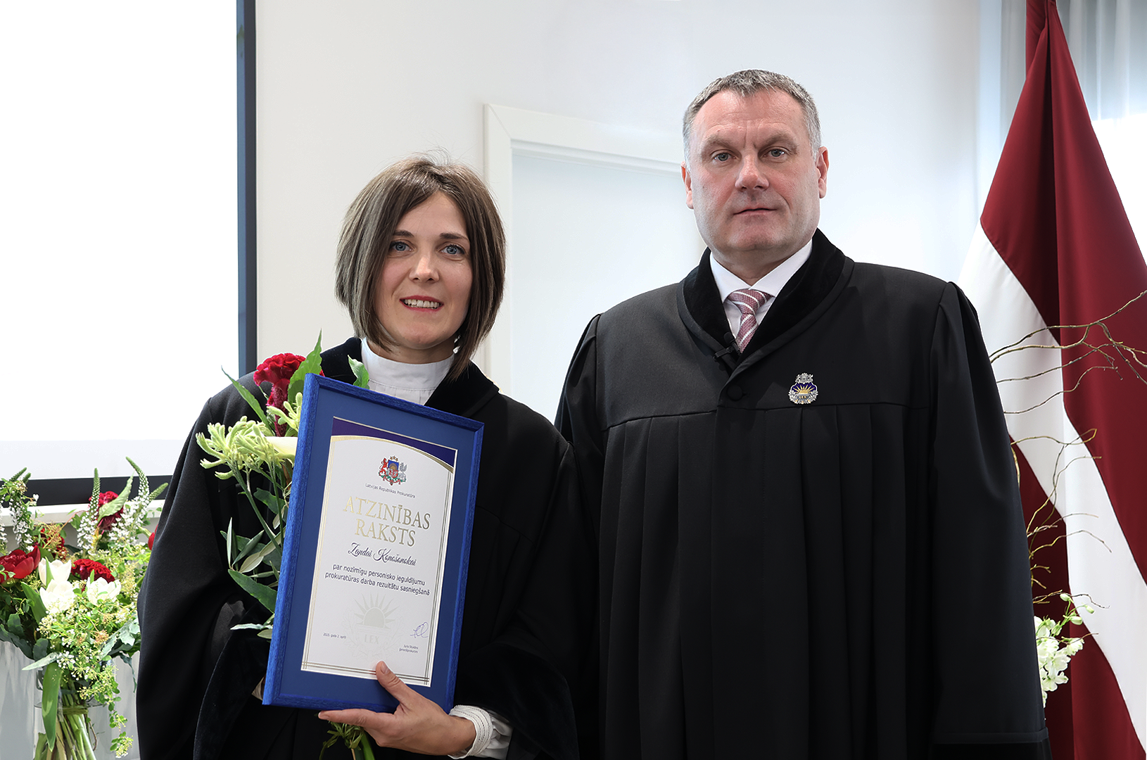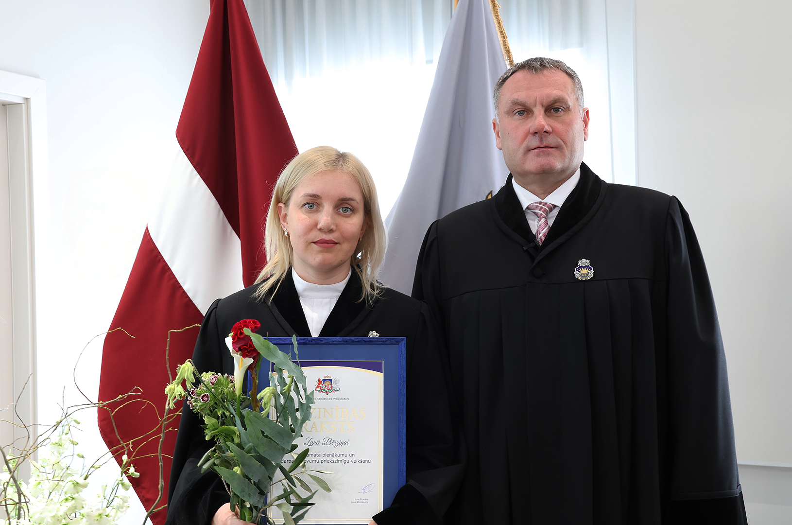 Prokuratūras II pakāpes Goda zīmi par nozīmīgu ieguldījumu prokuratūras attīstībā, demokrātijas un tiesiskuma stiprināšanā saņēma Ģenerālprokuratūras Darbības kontroles un starptautiskās sadarbības departamenta Personu un valsts tiesību aizsardzības koordinācijas nodaļas prokurore Dace Trušinska. Prokuratūras III pakāpes Goda zīmi par godprātīgu un pašaizliedzīgu darbu sabiedrības un valsts labā saņēma Rīgas Ziemeļu prokuratūras prokurore Alla Seibute. Tāpat Prokuratūras III pakāpes Goda zīmi par būtisku ieguldījumu prokuratūras kopējo rezultātu sasniegšanā saņēma Zemgales tiesas apgabala prokuratūras prokurores Lidija Bugina un Santa Janševska un Rietumzemgales prokuratūras prokurors Raivis Košinskis.