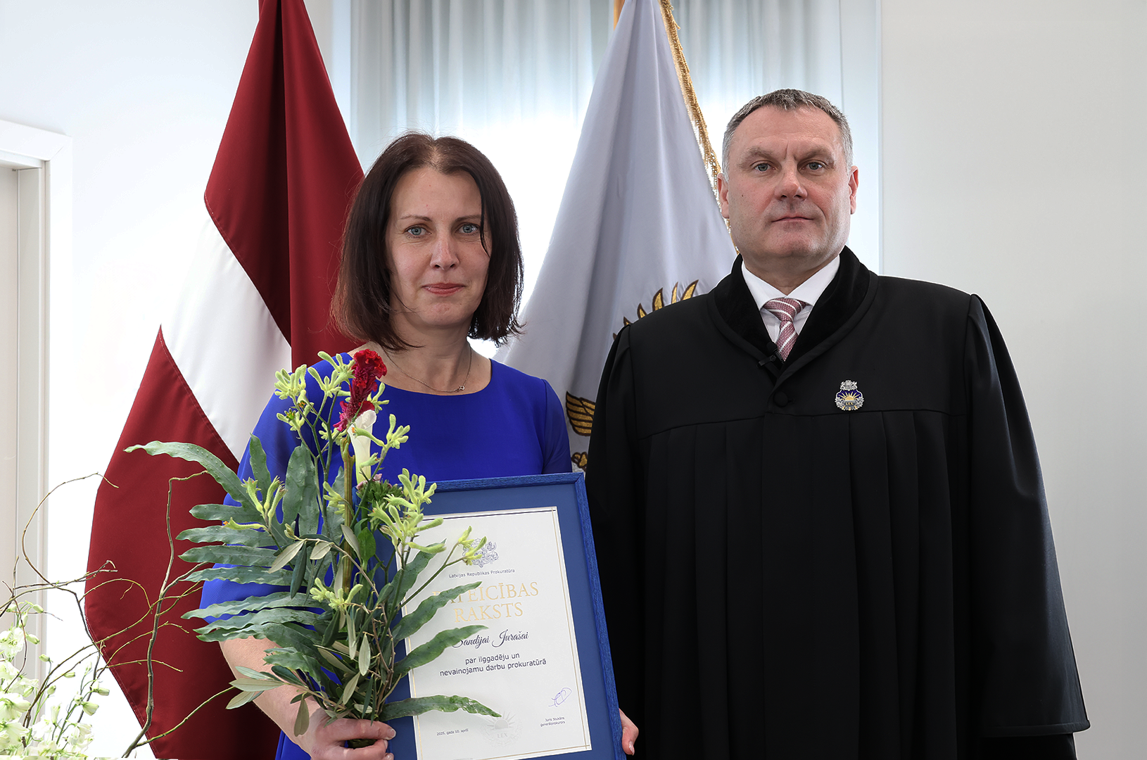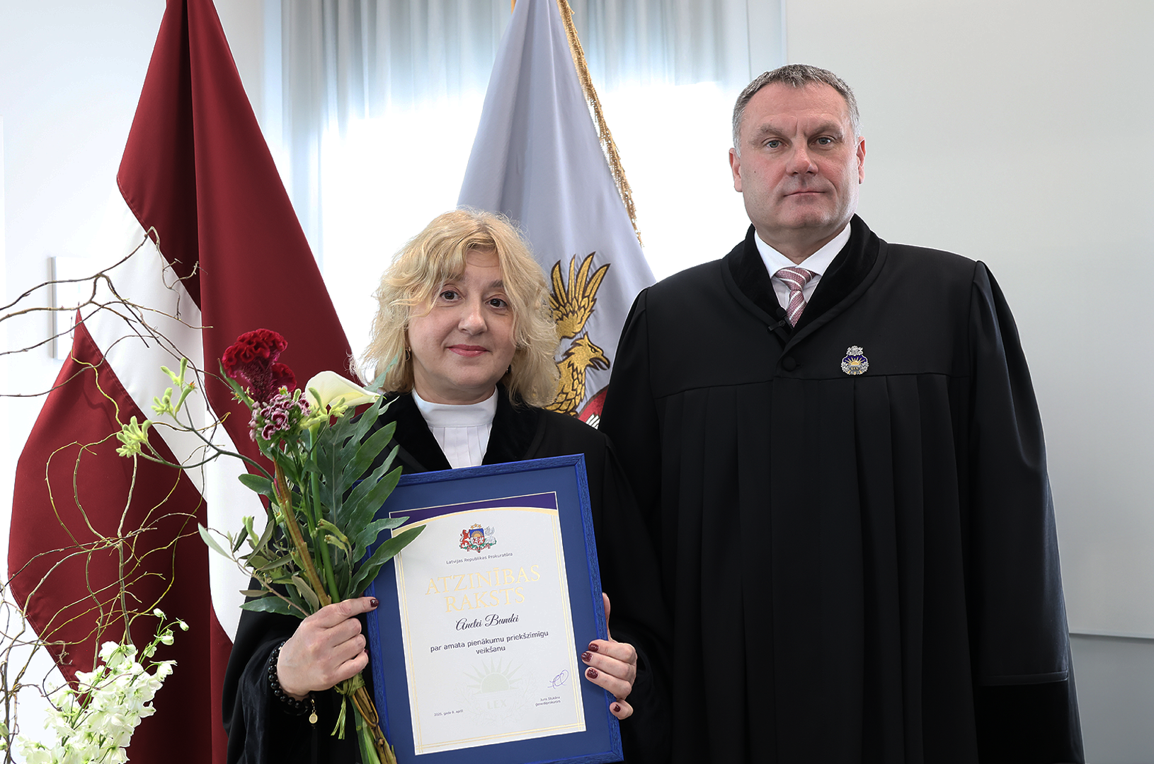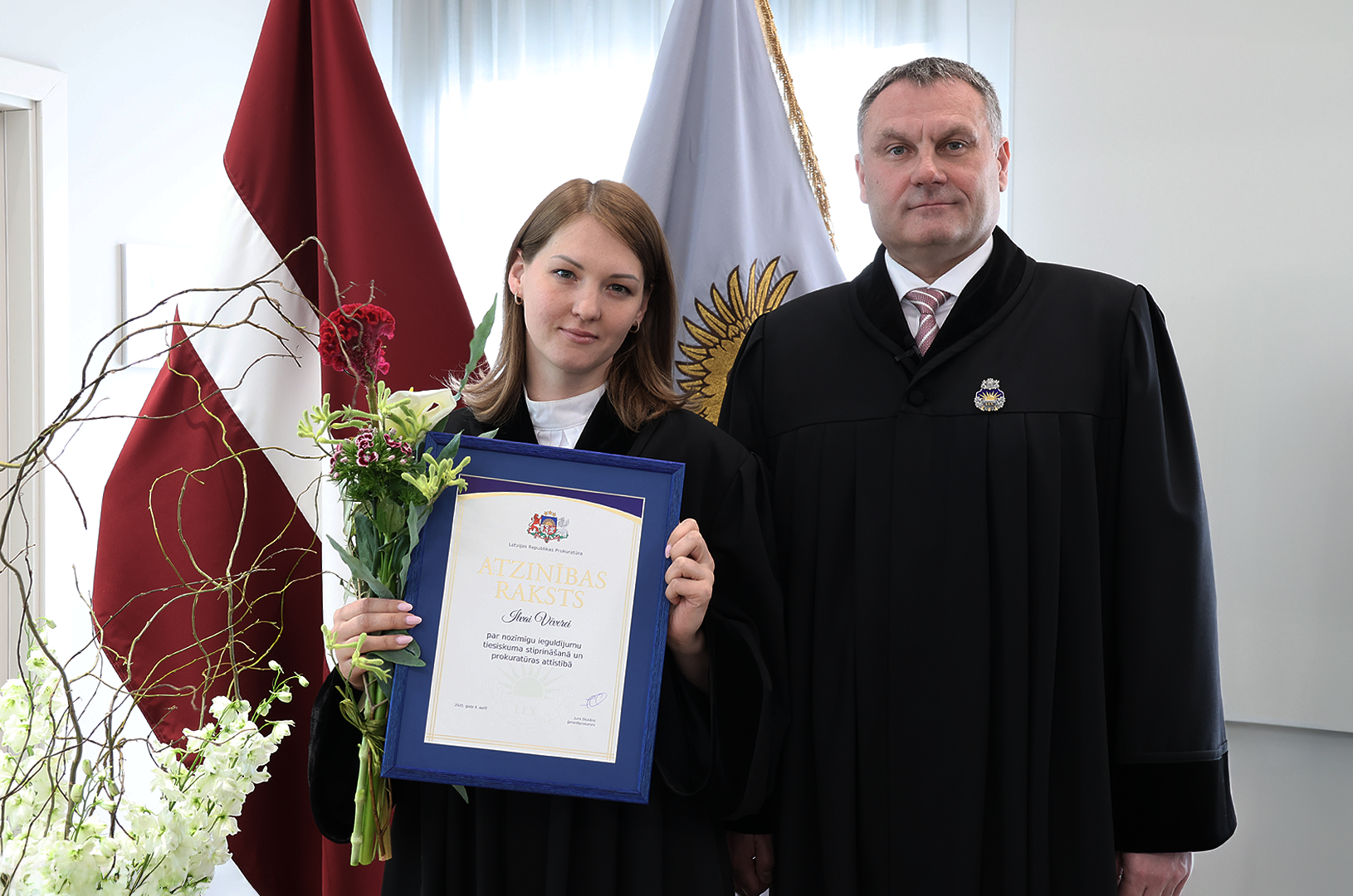 Prokuratūras II pakāpes Goda zīmi par nozīmīgu ieguldījumu prokuratūras attīstībā, demokrātijas un tiesiskuma stiprināšanā saņēma Ģenerālprokuratūras Darbības kontroles un starptautiskās sadarbības departamenta Personu un valsts tiesību aizsardzības koordinācijas nodaļas prokurore Dace Trušinska. Prokuratūras III pakāpes Goda zīmi par godprātīgu un pašaizliedzīgu darbu sabiedrības un valsts labā saņēma Rīgas Ziemeļu prokuratūras prokurore Alla Seibute. Tāpat Prokuratūras III pakāpes Goda zīmi par būtisku ieguldījumu prokuratūras kopējo rezultātu sasniegšanā saņēma Zemgales tiesas apgabala prokuratūras prokurores Lidija Bugina un Santa Janševska un Rietumzemgales prokuratūras prokurors Raivis Košinskis.