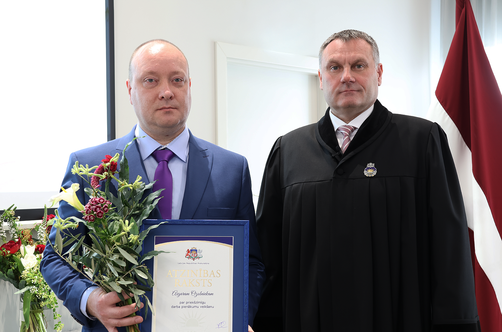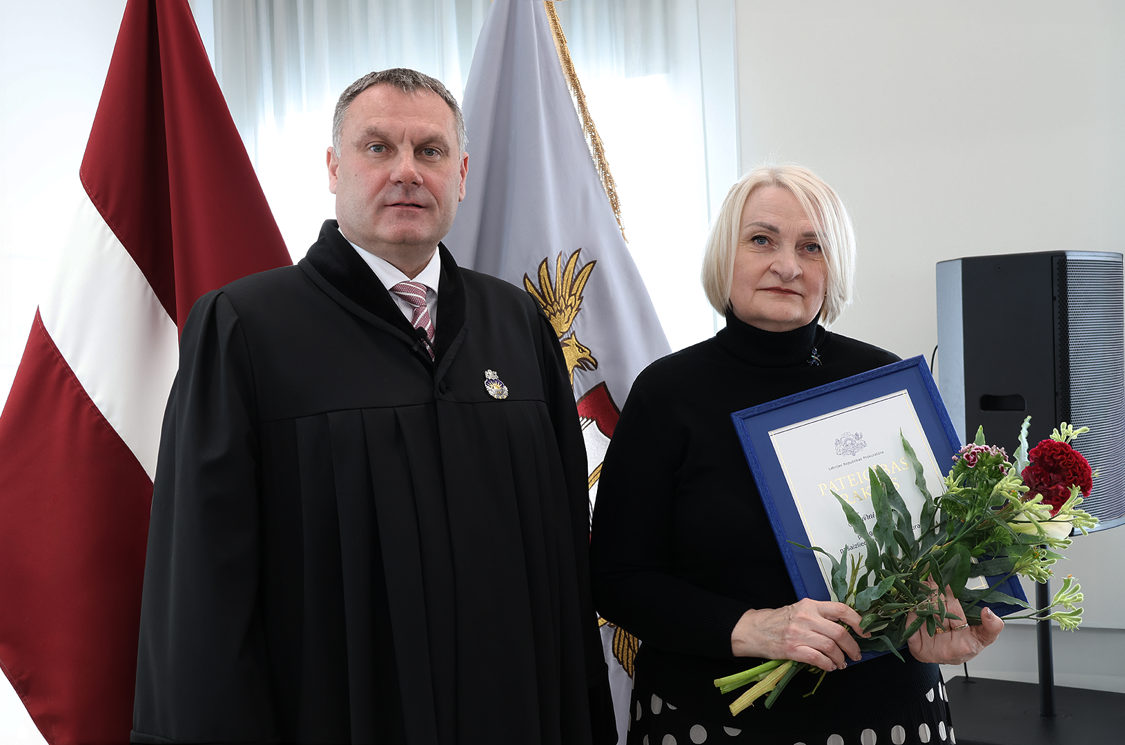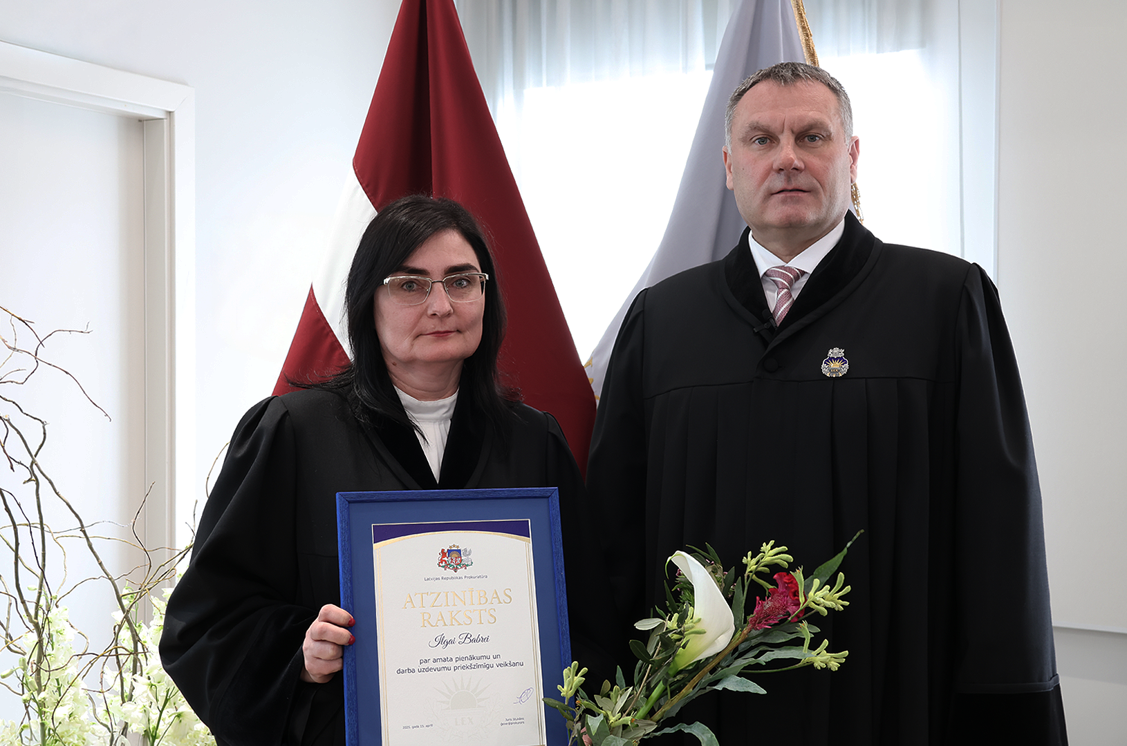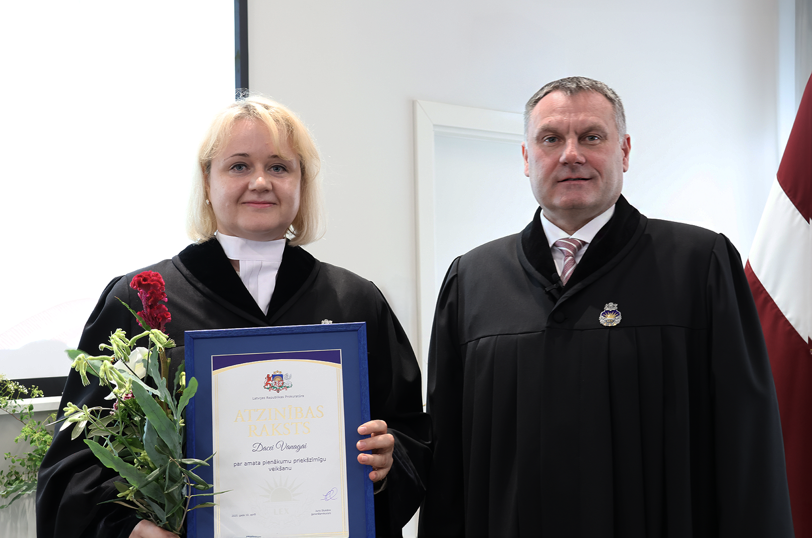 Prokuratūras II pakāpes Goda zīmi par nozīmīgu ieguldījumu prokuratūras attīstībā, demokrātijas un tiesiskuma stiprināšanā saņēma Ģenerālprokuratūras Darbības kontroles un starptautiskās sadarbības departamenta Personu un valsts tiesību aizsardzības koordinācijas nodaļas prokurore Dace Trušinska. Prokuratūras III pakāpes Goda zīmi par godprātīgu un pašaizliedzīgu darbu sabiedrības un valsts labā saņēma Rīgas Ziemeļu prokuratūras prokurore Alla Seibute. Tāpat Prokuratūras III pakāpes Goda zīmi par būtisku ieguldījumu prokuratūras kopējo rezultātu sasniegšanā saņēma Zemgales tiesas apgabala prokuratūras prokurores Lidija Bugina un Santa Janševska un Rietumzemgales prokuratūras prokurors Raivis Košinskis.
