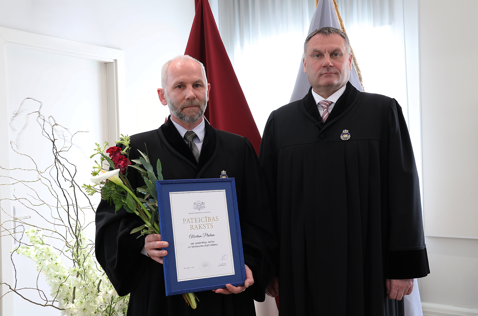 Prokuratūras apbalvojumu “Pateicība raksts” saņēma Pierīgas prokuratūras prokurore Viktorija Soldatova un Dienvidlatgales prokuratūras prokurors Alberts Plinta. Pateicības rakstus saņēma arī Rietumzemgales prokuratūras prokurora palīdze Evitai Uice, Dienvidlatgales prokuratūras prokurora palīdzes Svetlana Minčonoka un Anita Spūle, lietvedības pārzine Ināra Jokste un autovadītājs Jānis Zīmelis, Vidzemes prokuratūras prokurora palīdze Sandija Juraša un lietvedības pārzine Līga Sekste-Finarte, kā arī Austrumzemgales prokuratūras autovadītājs Jānis Ozoliņš.