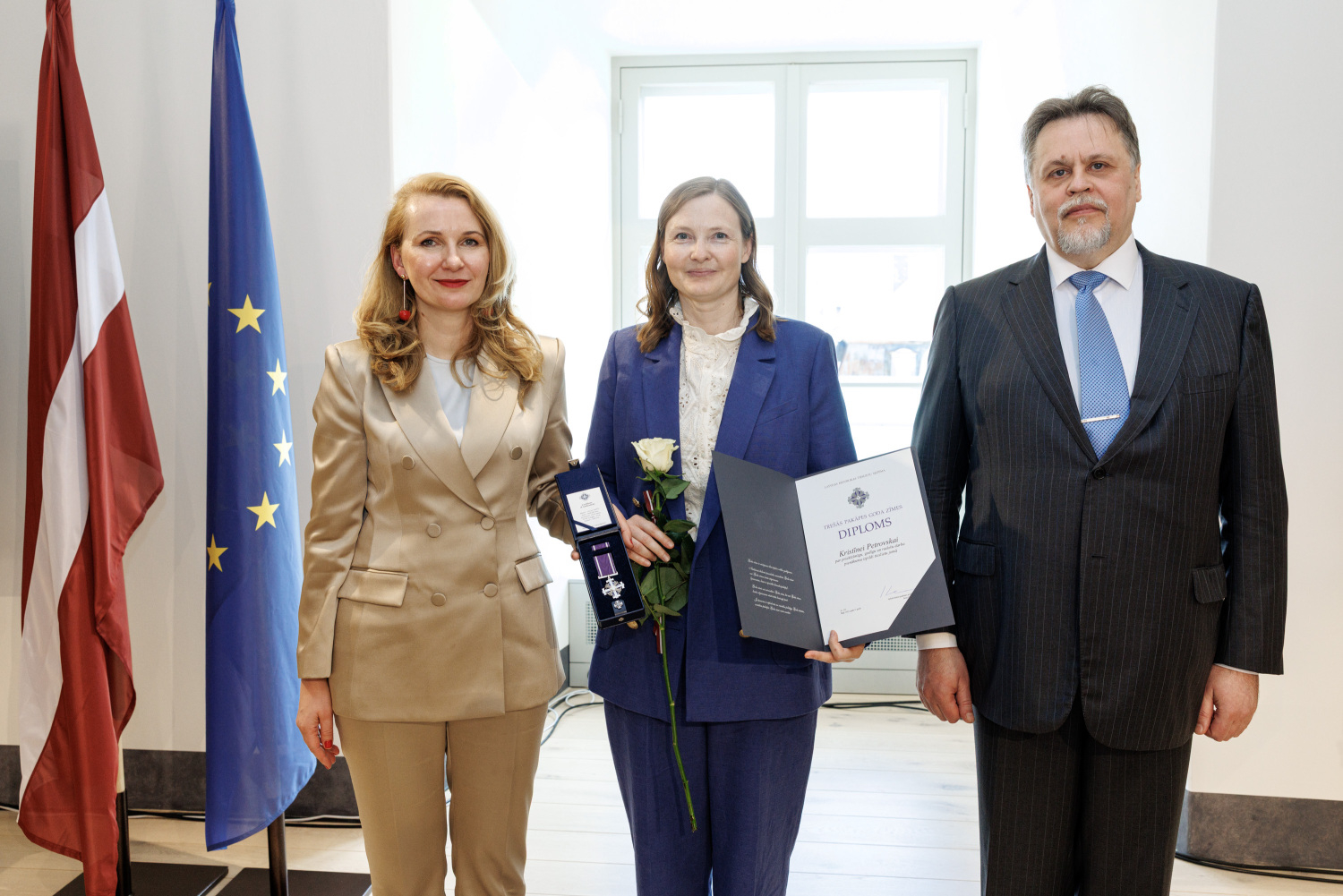 Par priekšzīmīgu, godīgu un radošu darba pienākumu tieslietu jomā Tieslietu sistēmas III pakāpes Goda zīmi saņēma trīs prokurores - Rīgas tiesas apgabala prokuratūras prokurores Kristīne Petrovska un Baiba Balode un Zemgales tiesas apgabala prokuratūras prokurore Ingrīda Golubeva.