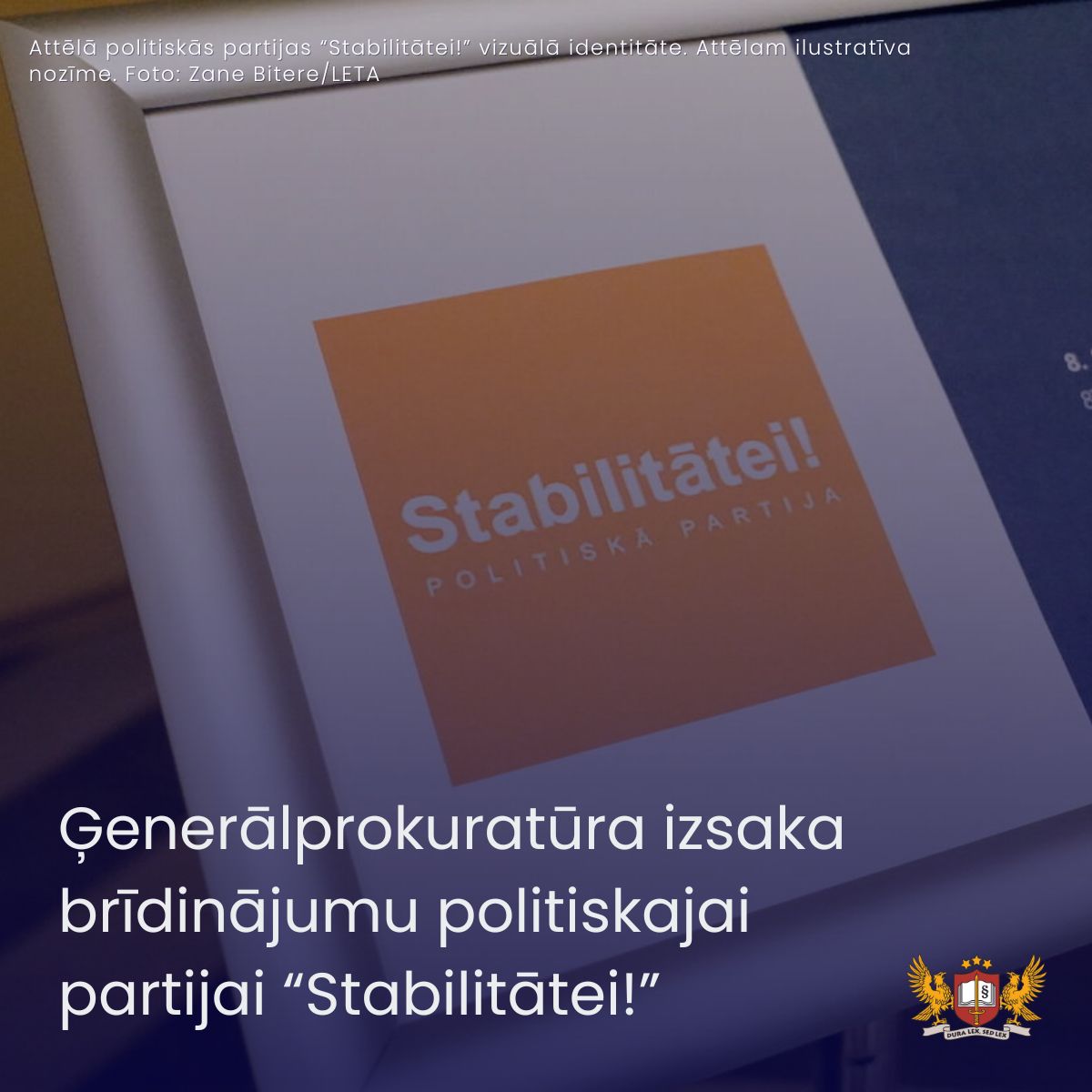 Ģenerālprokuratūra izsaka brīdinājumu politiskajai partijai “Stabilitātei!”