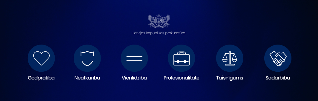 Mūsu darbības principus nosaka Prokuratūras likums, kurā izklāstītas iestādes funkcijas un struktūra, prokuroru pilnvaras un profesionālās kvalitātes un citi darbu regulējušie aspekti. Vairāk par prokuratūras uzdevumiem lasiet sadaļā ‘’Prokuratūras funkcijas un uzdevumi’’.