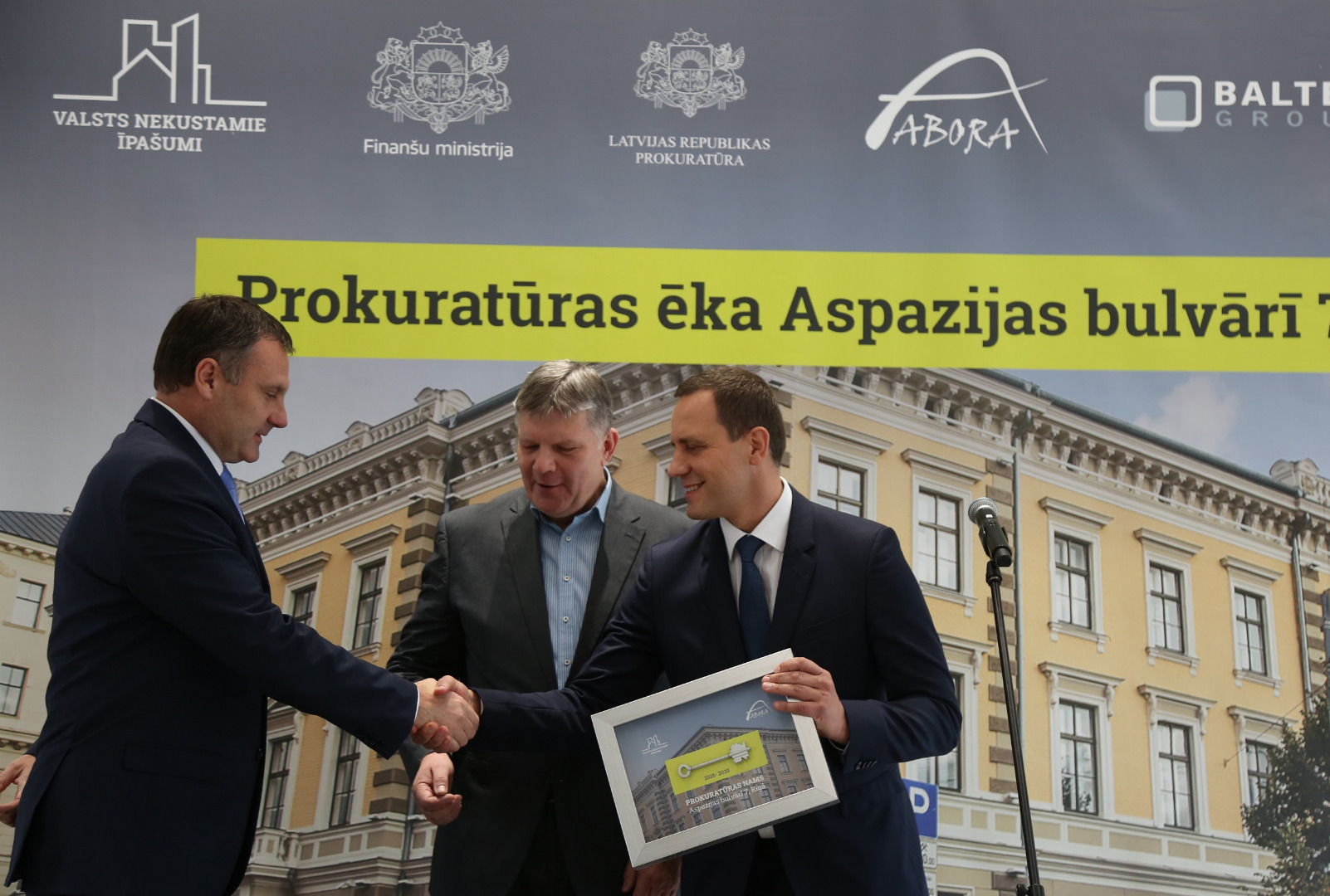 Šodien 8.oktobrī Valsts nekustamie īpašumi (VNĪ) svinīgā pasākumā simboliski nodeva bijušā policijas nama Aspazijas bulvārī 7 atslēgas Prokuratūrai.