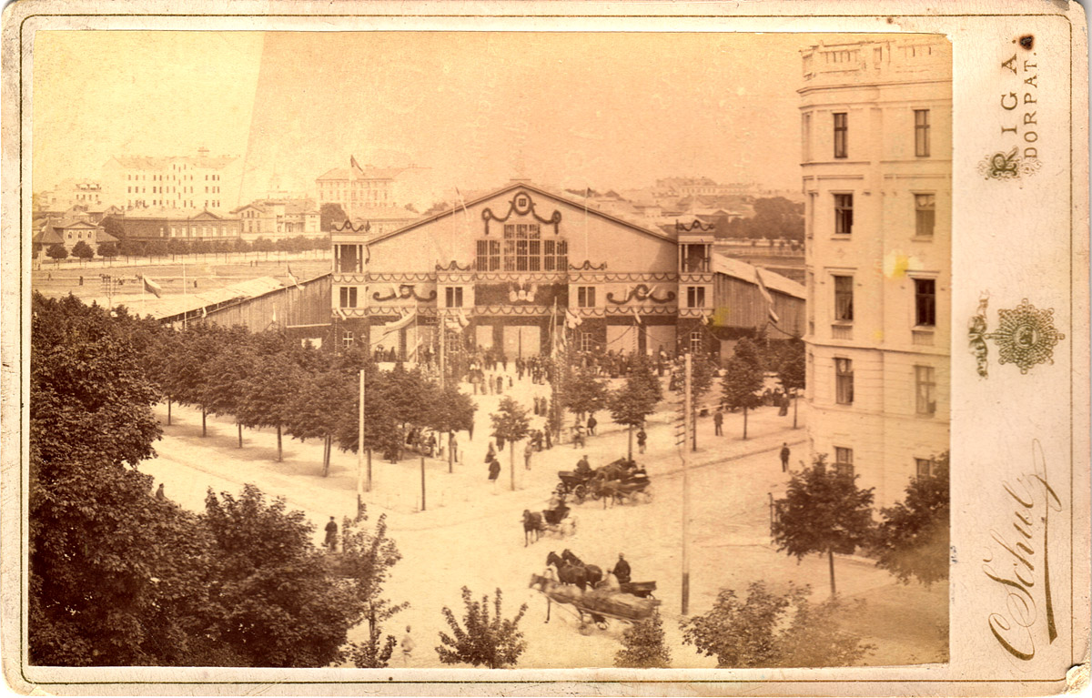 | III Dziesmu svētku celtne Rīgas esplanādē 1888. gadā | Sesto latvju vispārējo dziesmu un mūzikas svētku estrāde 1926. gadā |