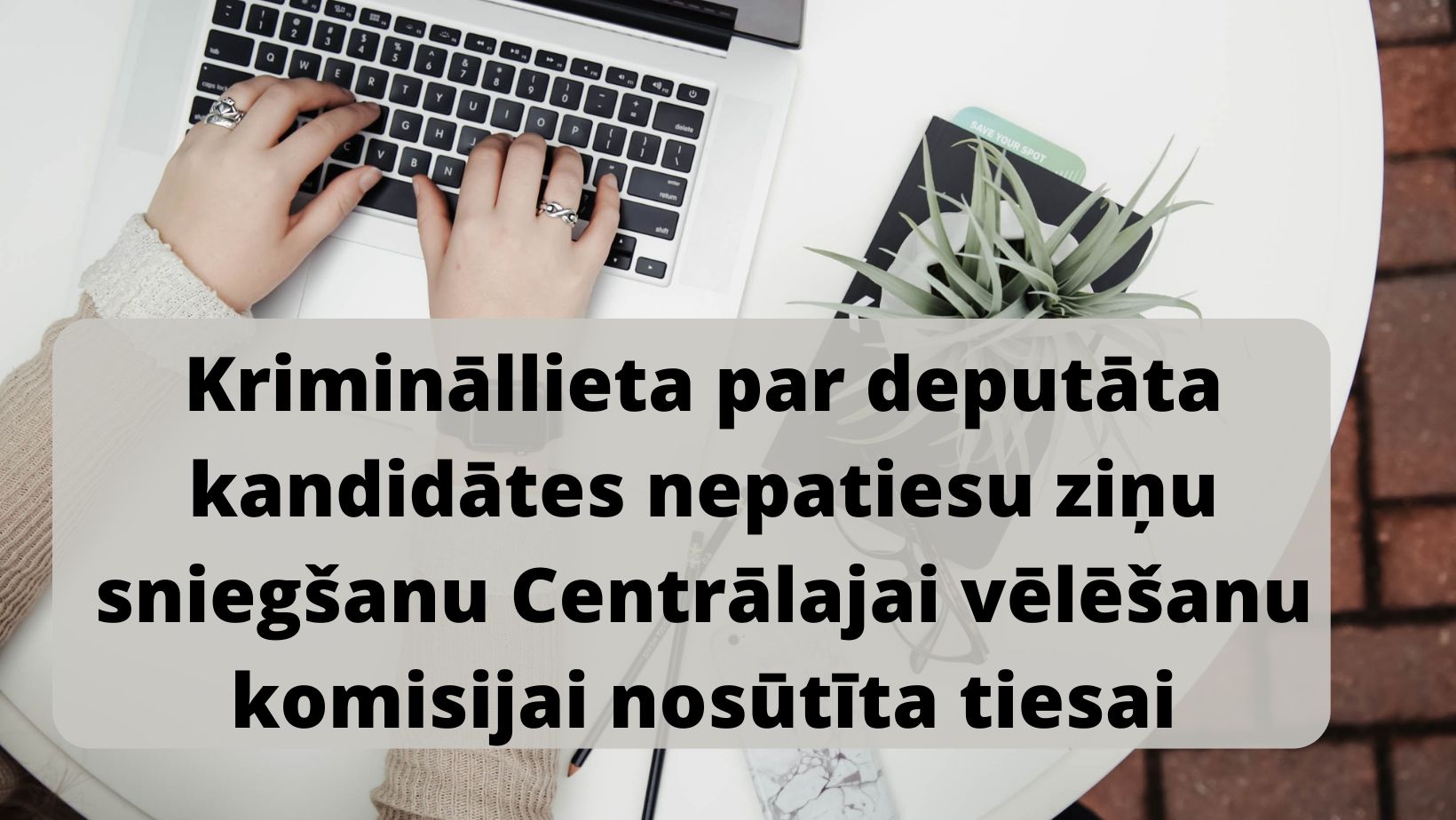 Krimināllieta par deputāta kandidātes nepatiesu ziņu sniegšanu Centrālajai vēlēšanu komisijai nosūtīta tiesai