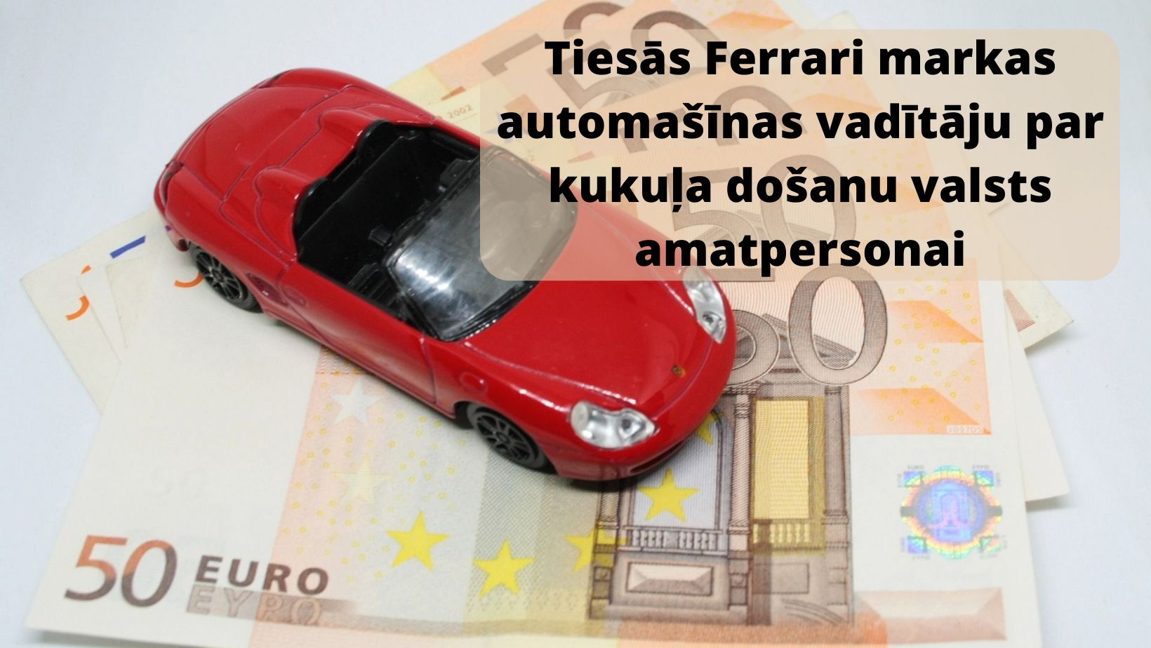 Tiesās Ferrari markas automašīnas vadītāju par kukuļa došanu valsts amatpersonai