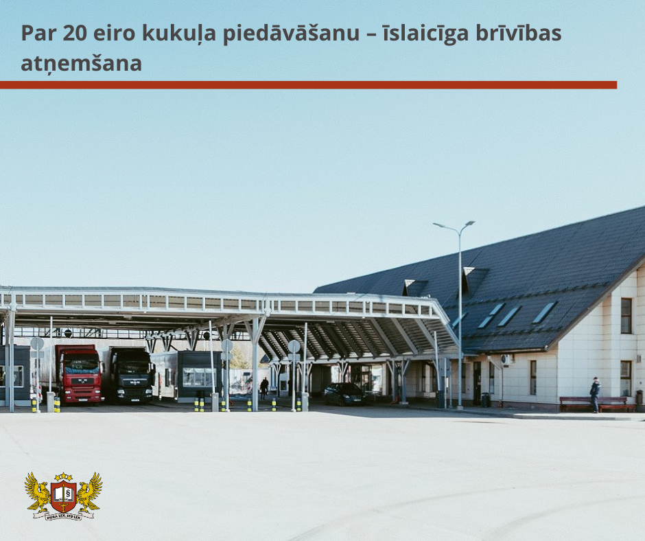 Par 20 eiro kukuļa piedāvāšanu – īslaicīga brīvības atņemšana