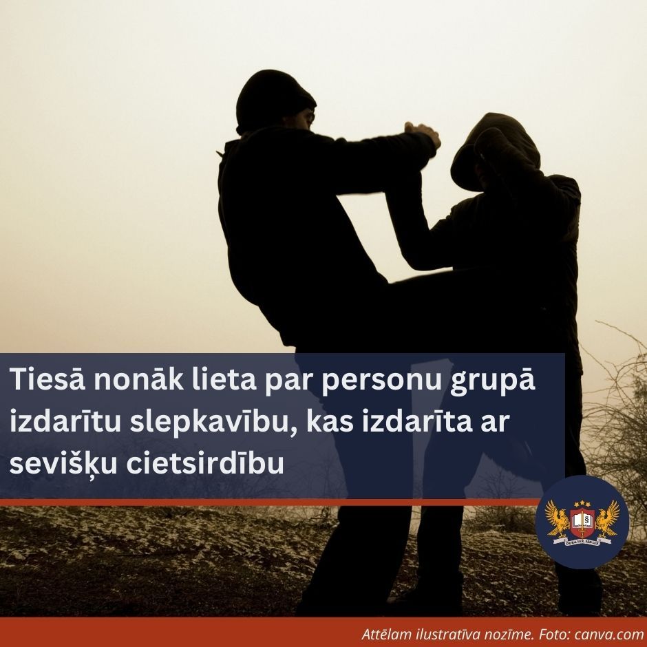 Tiesā nonāk lieta par personu grupā izdarītu slepkavību, kas izdarīta ar sevišķu cietsirdību