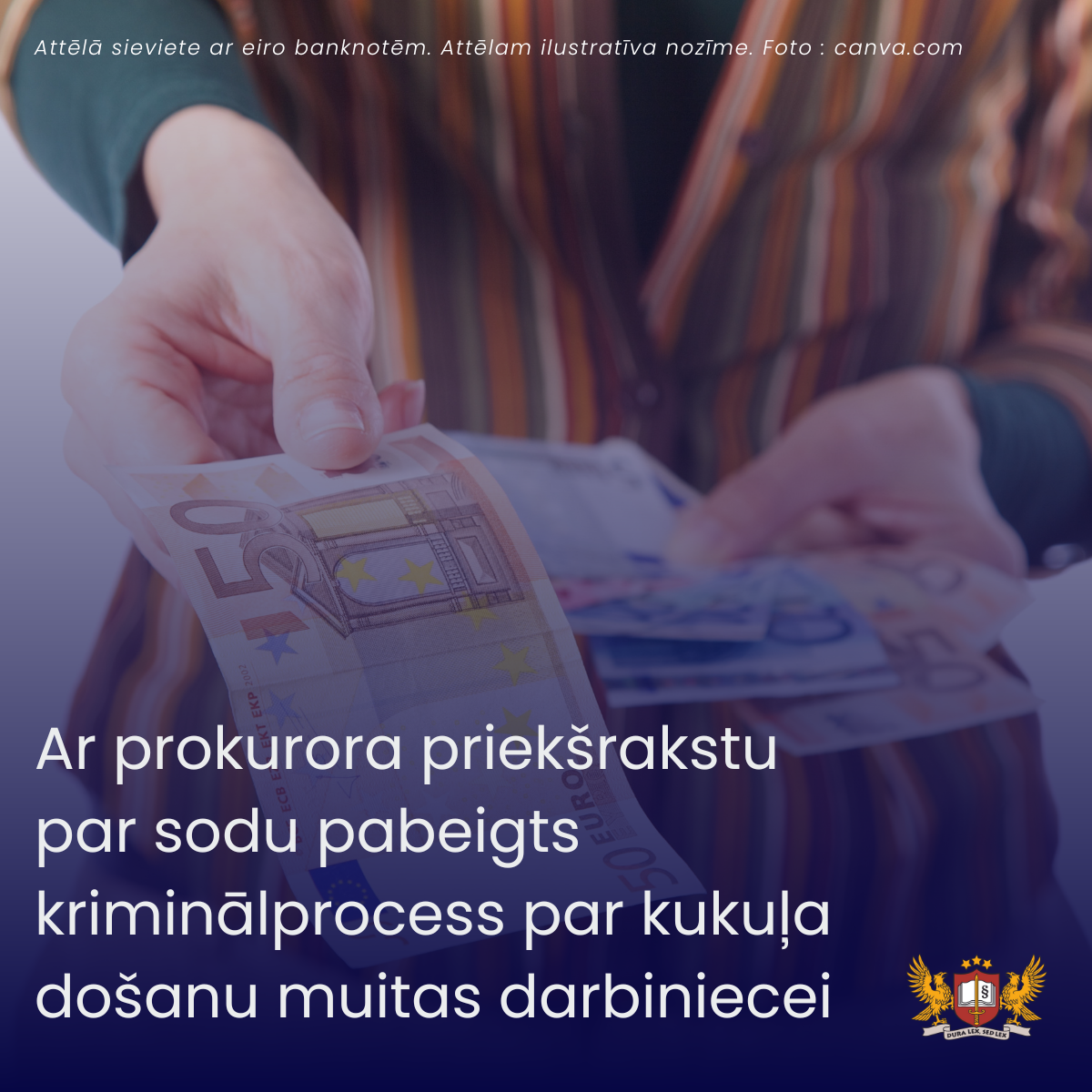 Ar prokurora priekšrakstu par sodu pabeigts kriminālprocess par kukuļa došanu muitas darbiniecei
