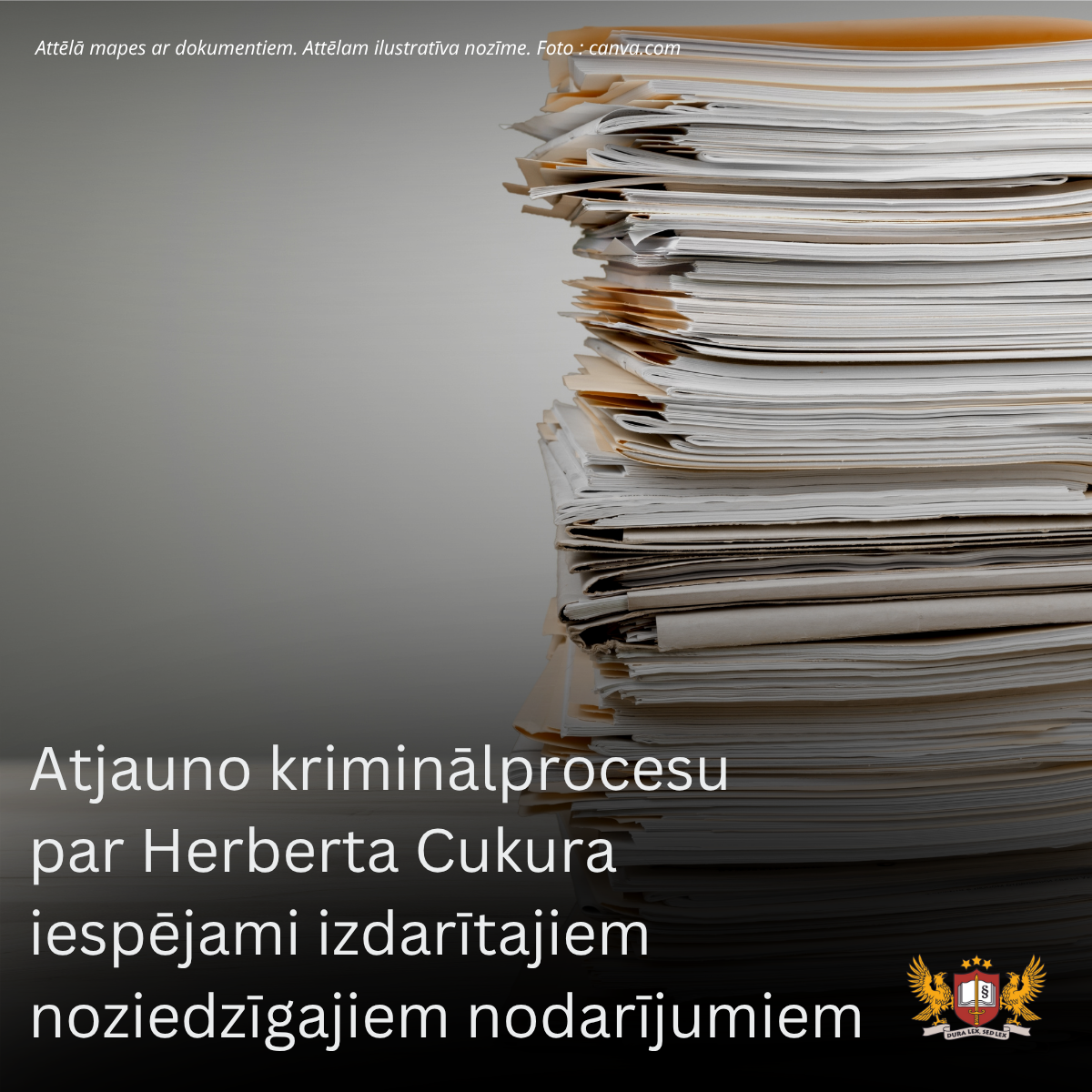 Atjauno kriminālprocesu par Herberta Cukura iespējami izdarītajiem noziedzīgajiem nodarījumiem
