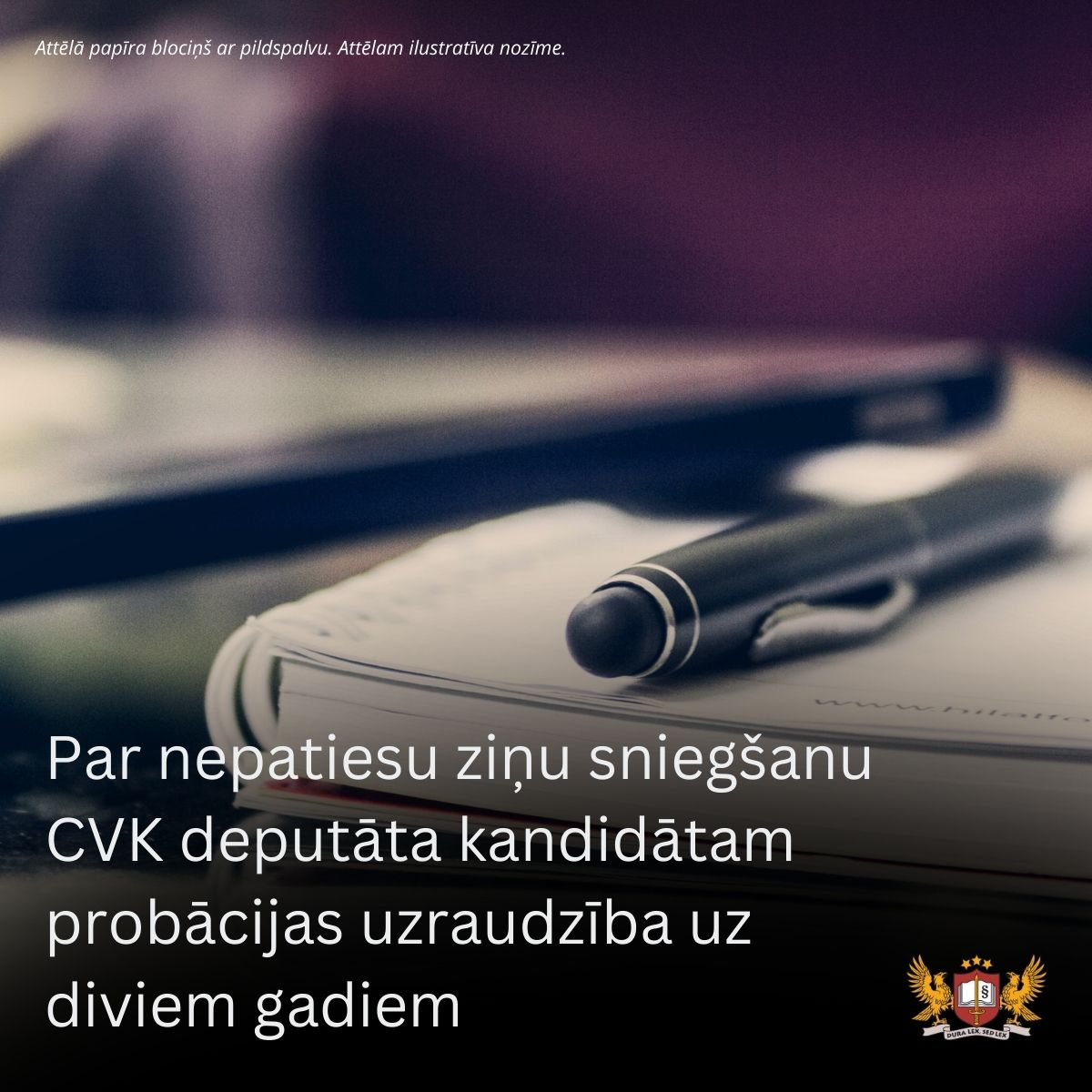 Par nepatiesu ziņu sniegšanu CVK deputāta kandidātam probācijas uzraudzība uz diviem gadiem