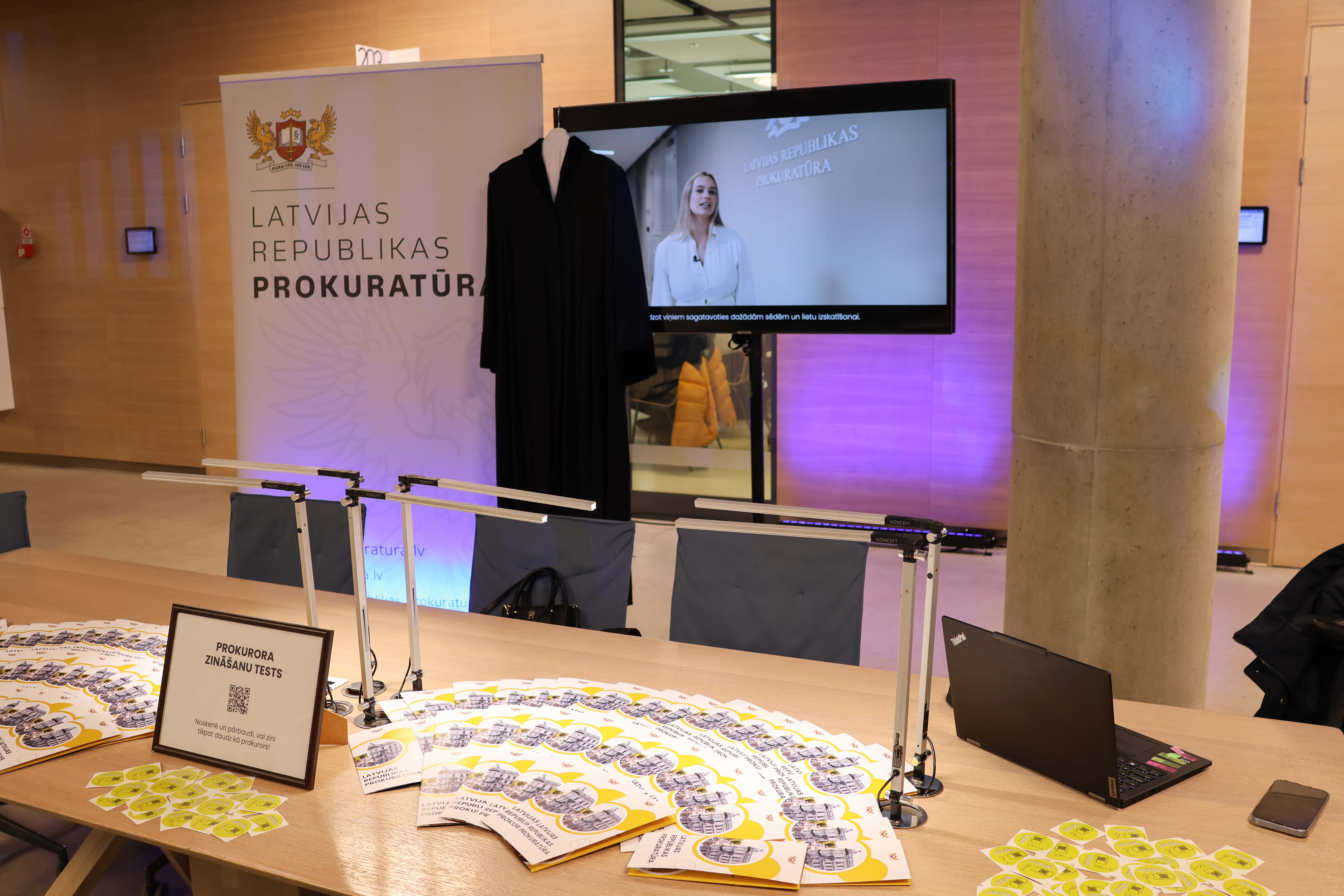 Jauniešiem bija iespēja izzināt prokurora amata specifiku un aizpildīt nelielu prokurora zināšanu testu, lai iegūtu priekštatu par pārbaudījumiem, kas jāpārvar ceļā uz prokurora amatu.