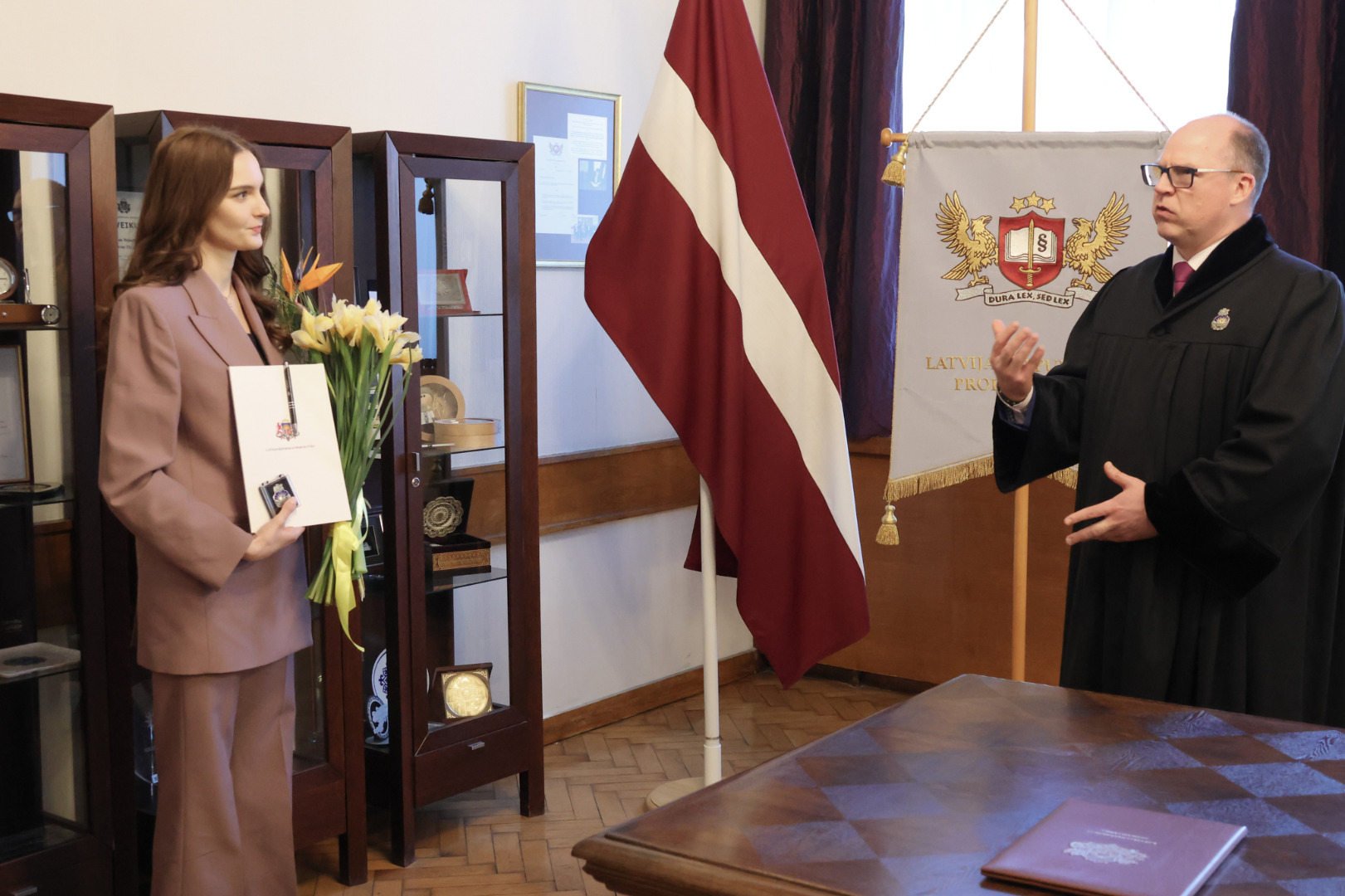 “Ņemot vērā to attieksmi, kas izstaro no Tevis, man nav nekādu šaubu, ka Tu esi izvēlējusies pareizo profesiju. Saglabā sevī šo attieksmi un atbildības sajūtu. Prokuroram ir piešķirta ļoti liela vara, tāpēc rīkojies ar šo varu saprātīgi un atceries, ka aiz katra Tava lēmuma ir cilvēks. Vienmēr esi taisnīga un godīga savā rīcībā, nekad nedari to, kas neatbilst Tavai pārliecībai un par ko ir sajūta, ka tas nebūs taisnīgi,” sacīja Armīns Meisters.