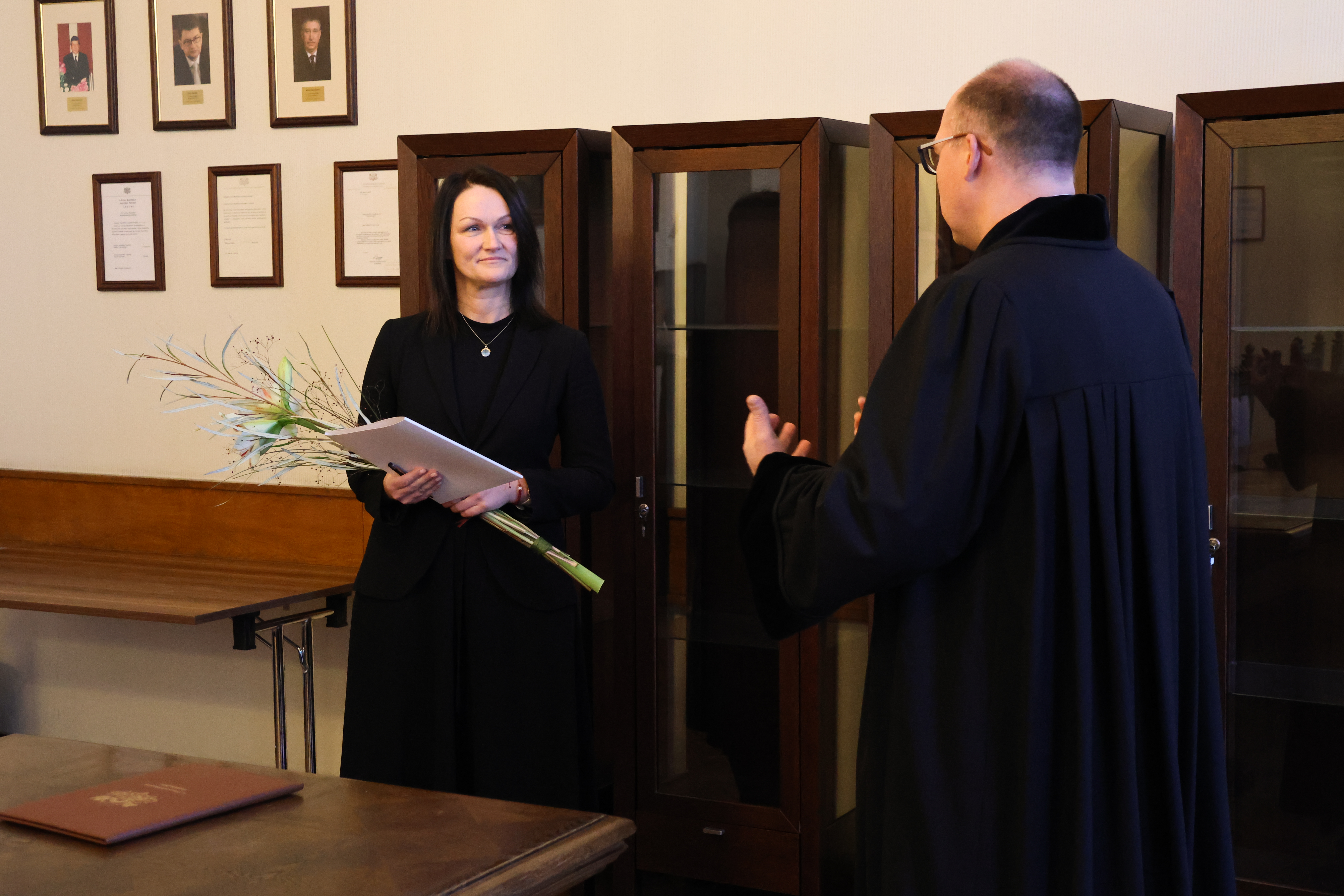 Ģenerālprokurors novēlēja Antrai veiksmi darbā un ātru iejušanos, pārorientējoties prokurora profesijā. Tāpat atgādināja, ka kolēģi noteikti palīdzēs ātrāk ieņemt prokurora mugurkaulu un stāju.