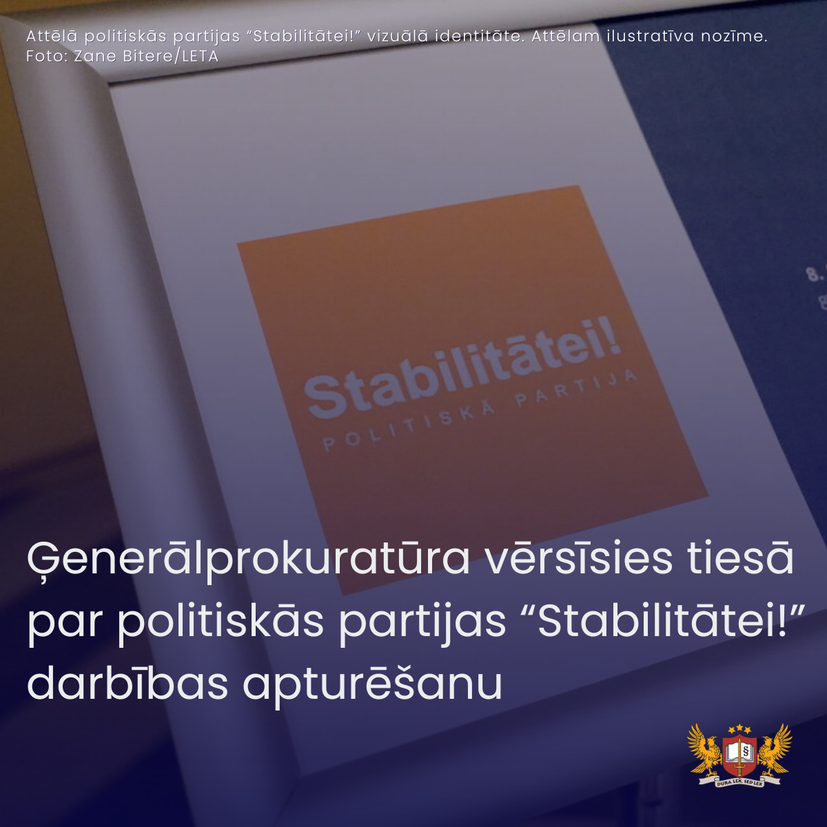 Ģenerālprokuratūra vērsīsies tiesā par politiskās partijas “Stabilitātei!” darbības apturēšanu