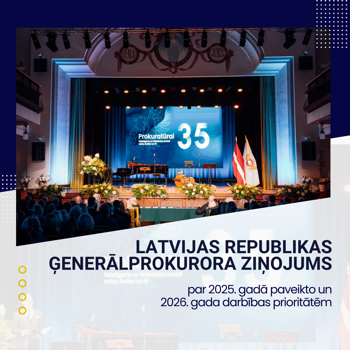 Ģenerālprokurors iesniedz Saeimai ziņojumu par iepriekšējā gadā paveikto un 2026. gada darbības prioritātēm